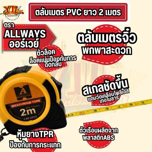 ตลับเมตรหุ้มยาง Alway ขนาด 2 เมตร: เครื่องมือวัดที่ทนทานและแม่นยำสำหรับทุกงาน