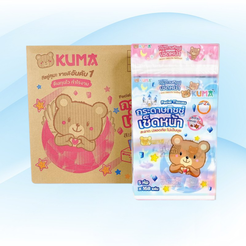 กระดาษทิชชู่เช็ดหน้า KUMA คุมะ ขนาด 168แผ่น ต่อห่อ