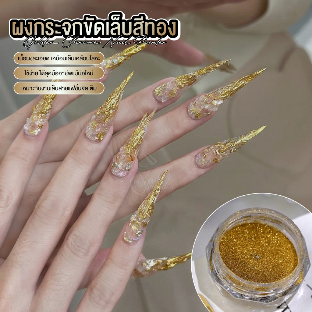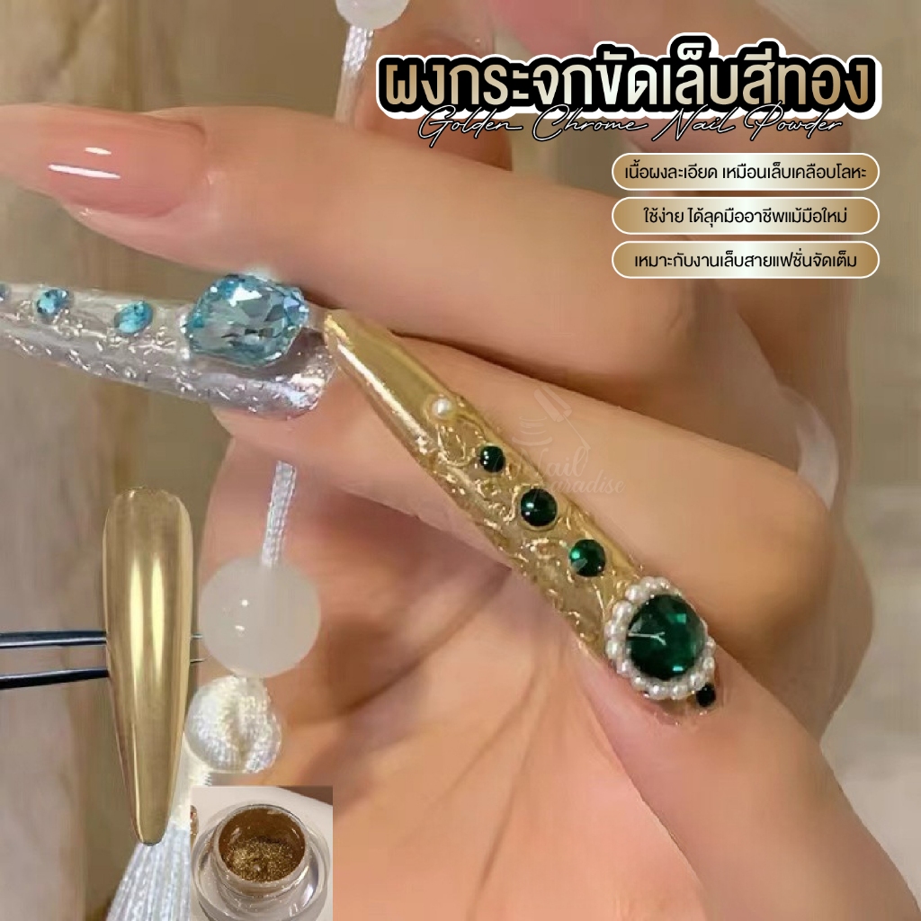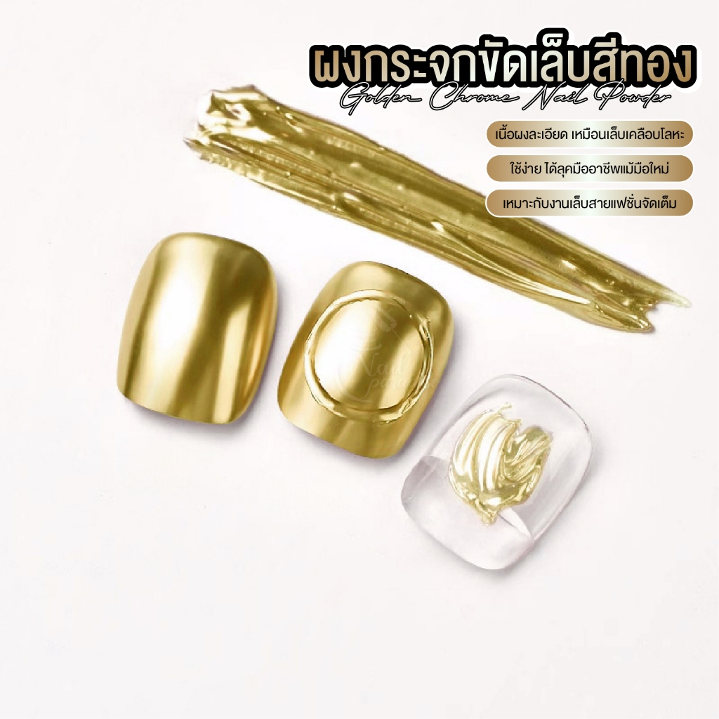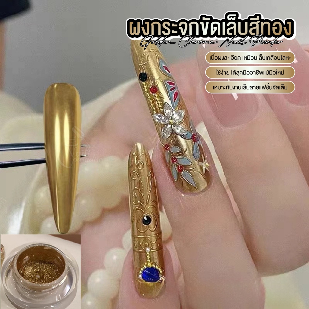 หยิบใส่ตะกร้าMajikku ผงกระจกขัดเล็บสีทอง งานเล็บทอง หรูหรา เนื้อละเอียดพิเศษ เงาแน่น ขัดง่าย Nail Powder ผงขัด