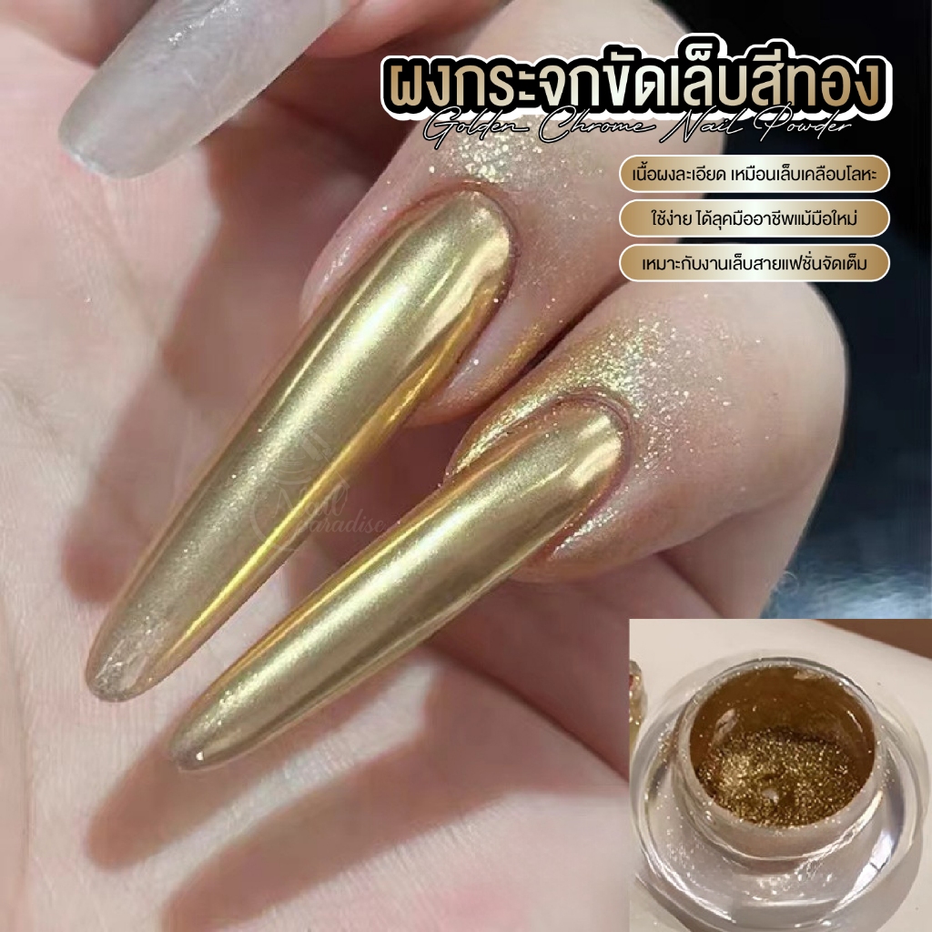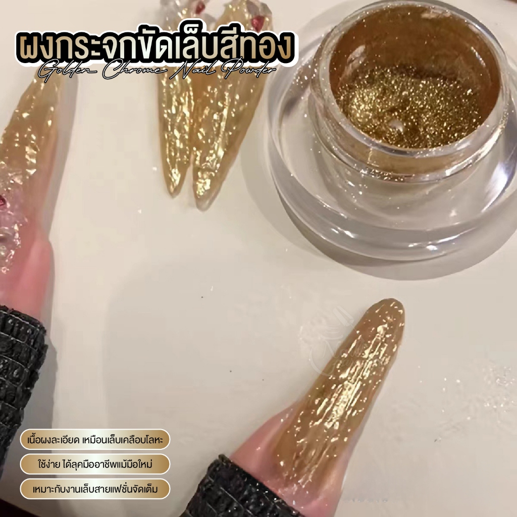 Majikku ผงกระจกขัดเล็บสีทอง งานเล็บทอง หรูหรา เนื้อละเอียดพิเศษ เงาแน่น ขัดง่าย Nail Powder ผงขัด