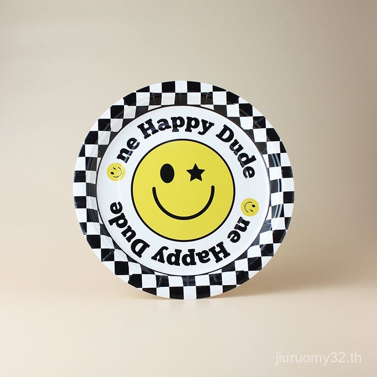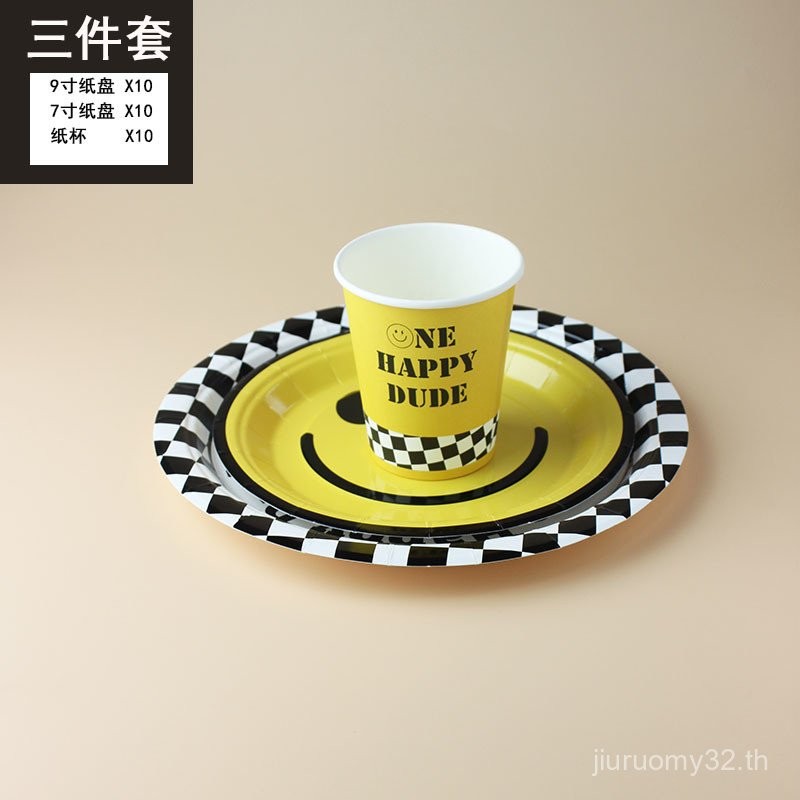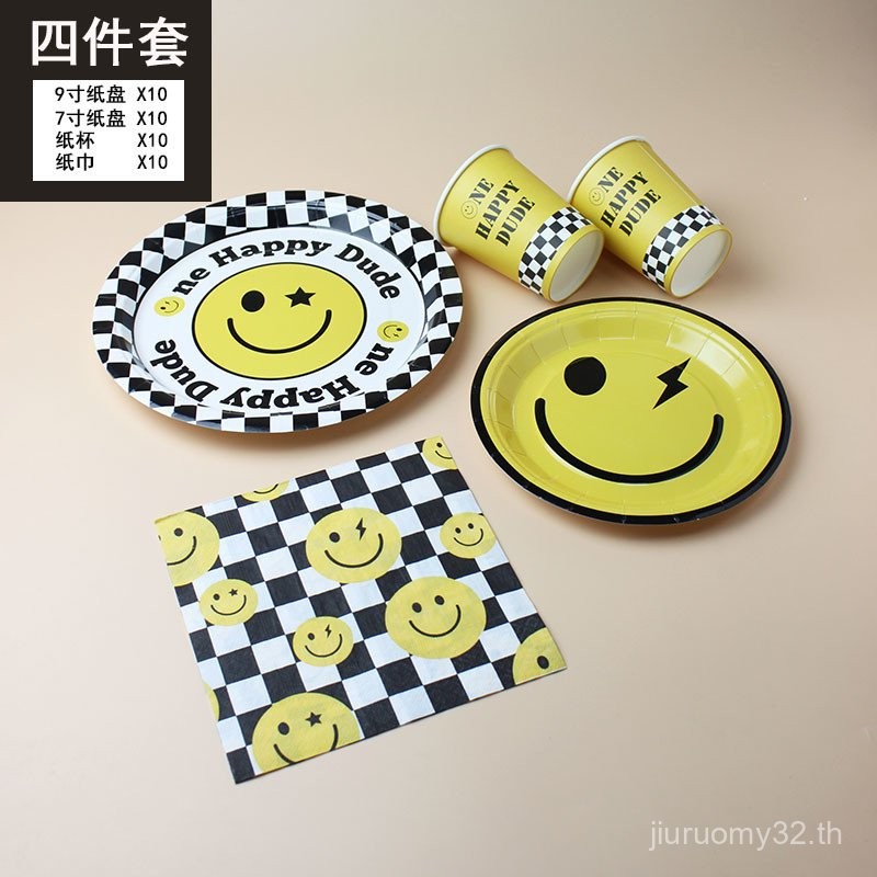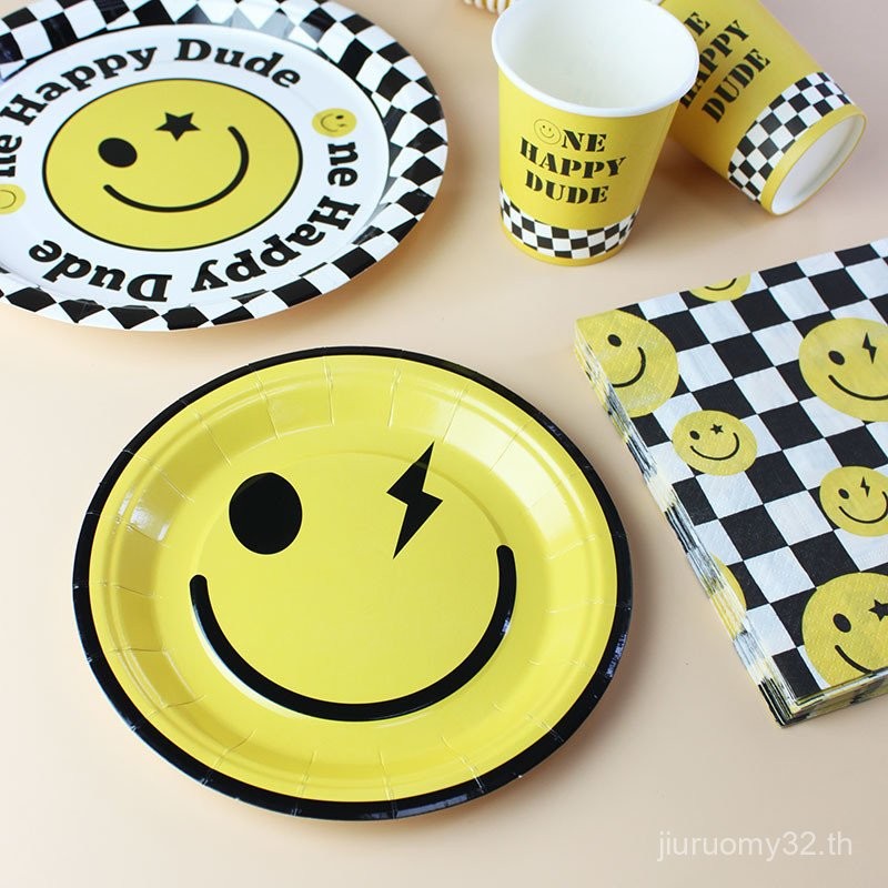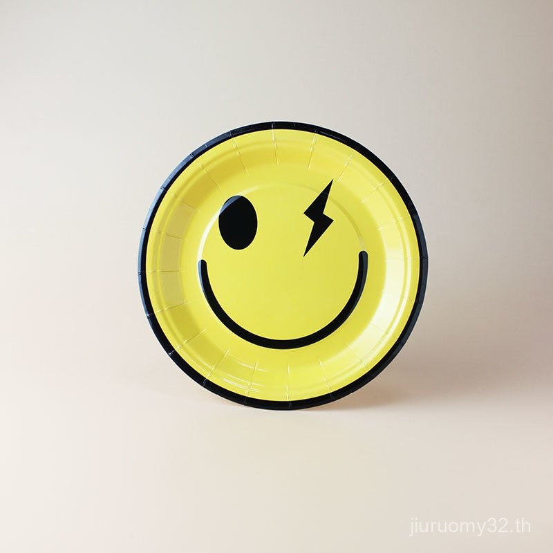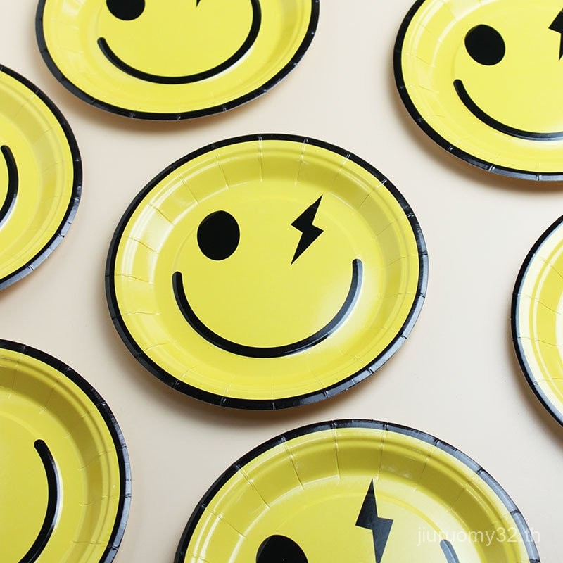 จานและถ้วยกระดาษใช้แล้วทิ้ง รูปหน้ายิ้มน่ารัก สำหรับงานปิกนิก งานเลี้ยงวันเกิด ตกแต่งงานเลี้ยง จานขนมเค้ก