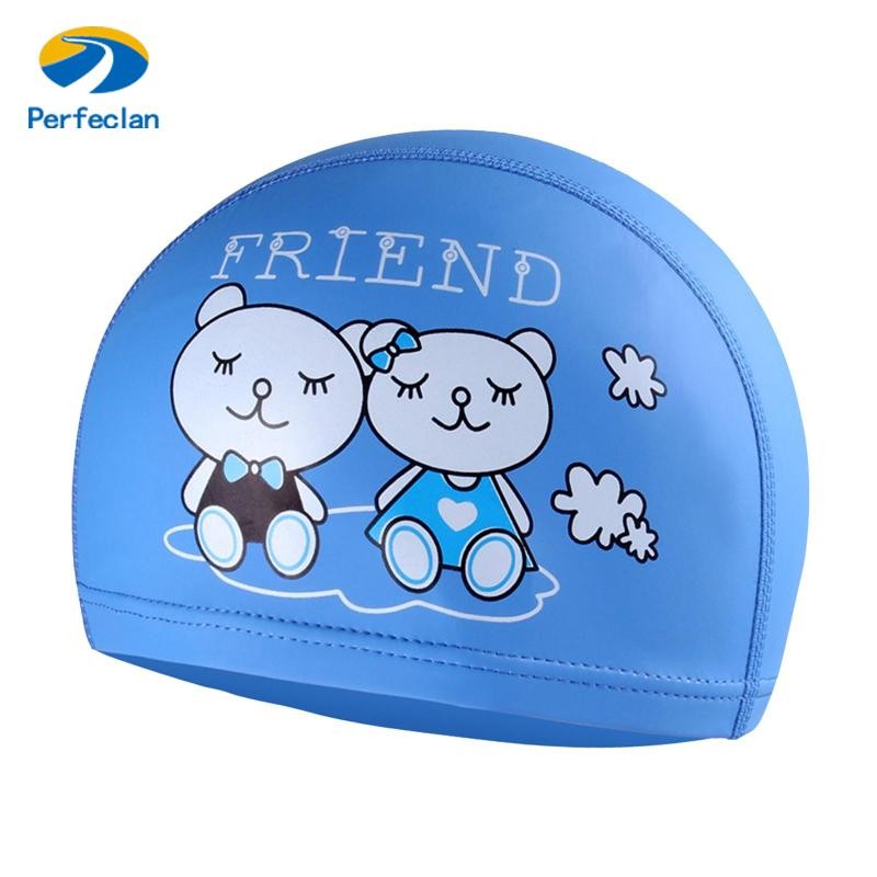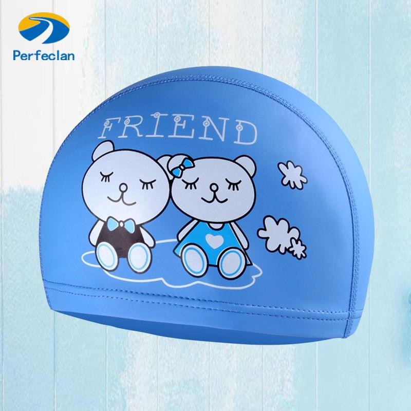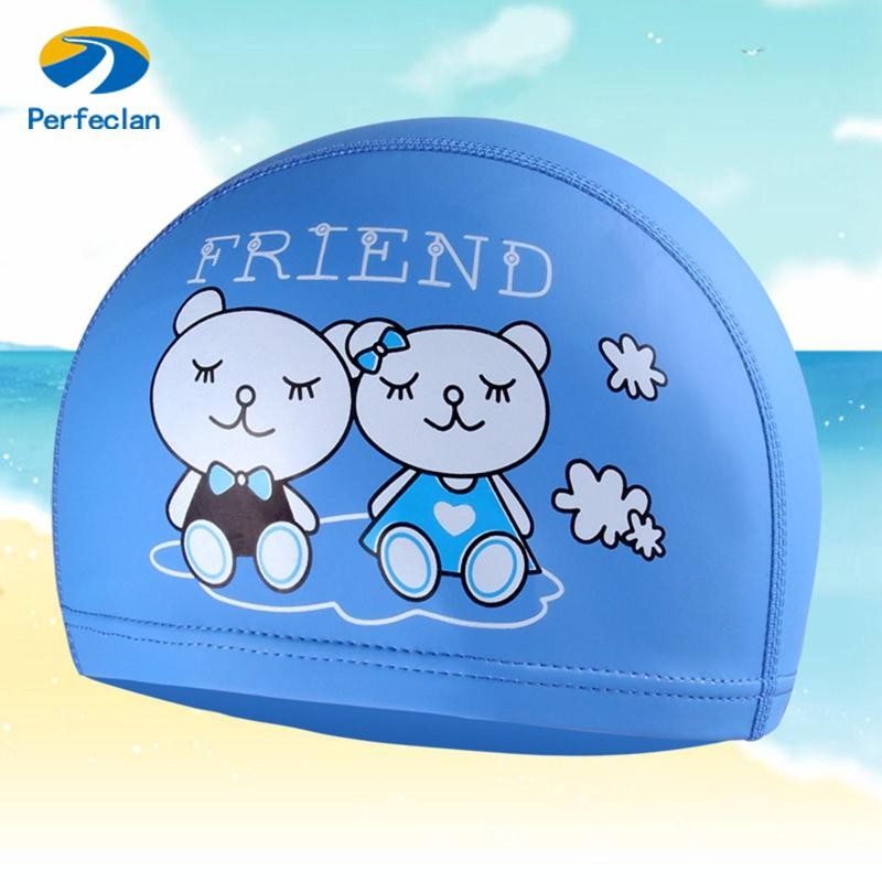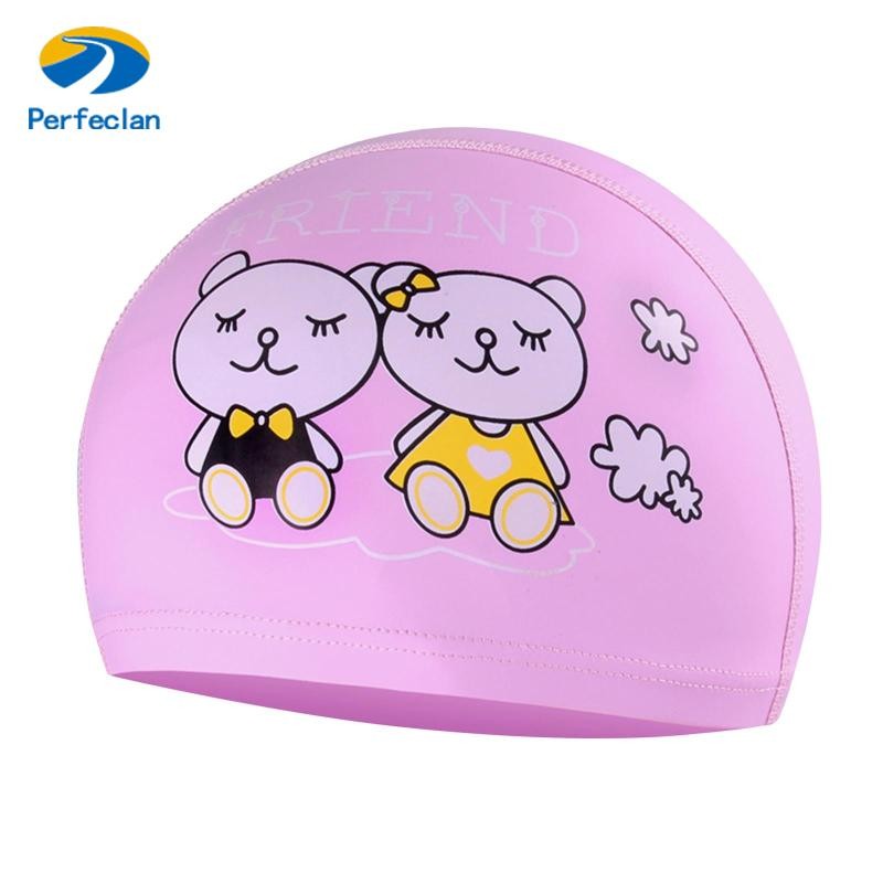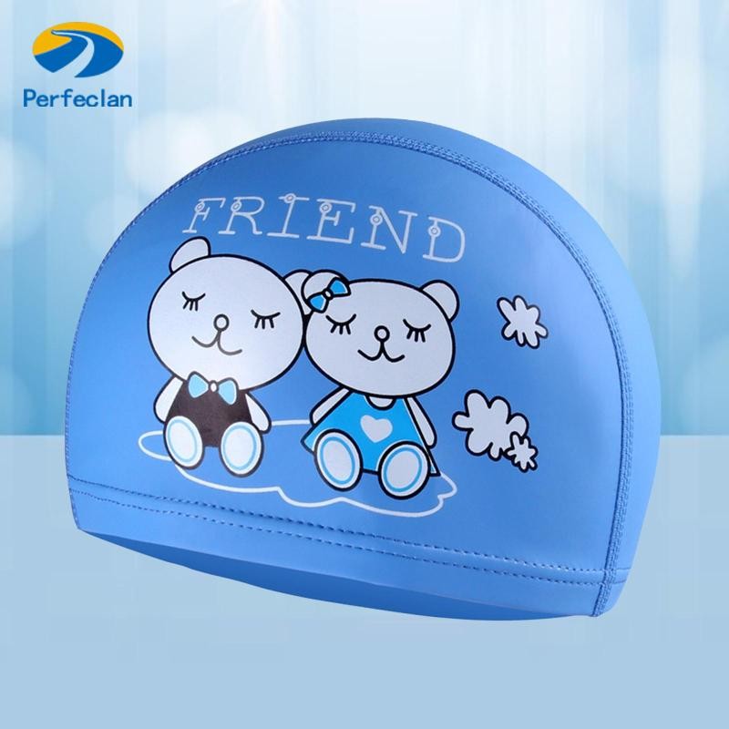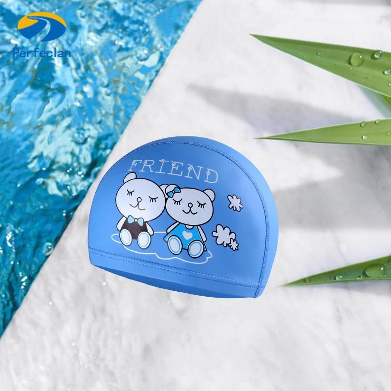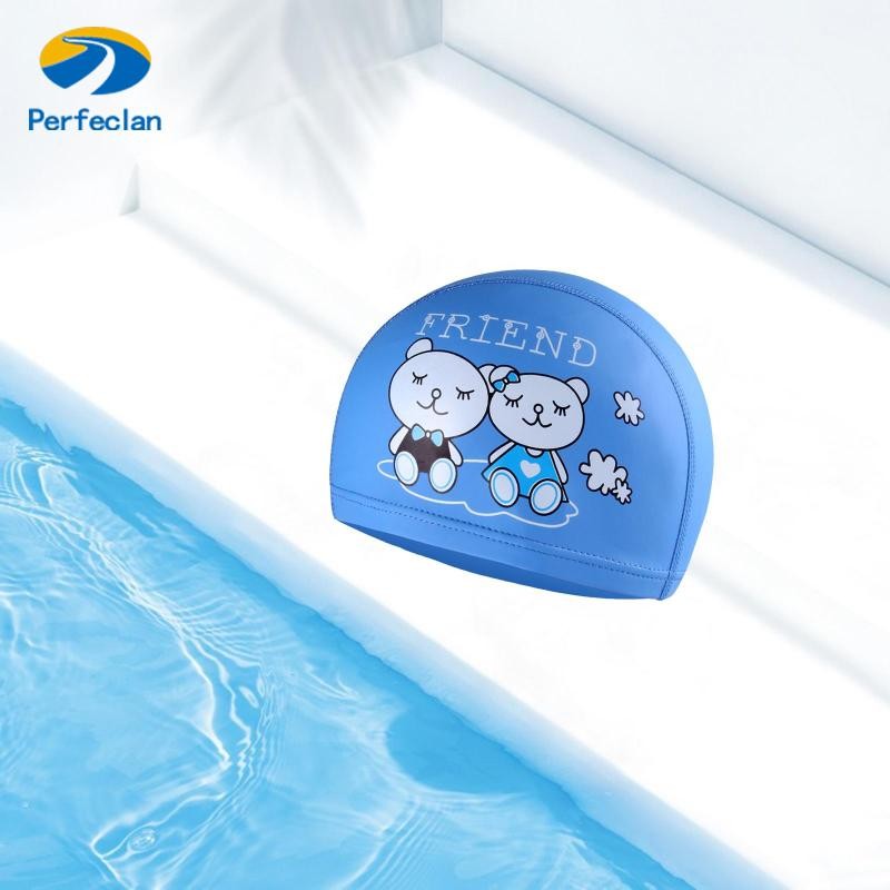 หมวกว่ายน้ำวัสดุ PU เกรดพรีเมี่ยมสำหรับเด็กผู้หญิงอายุต่ำกว่า 12 ปี