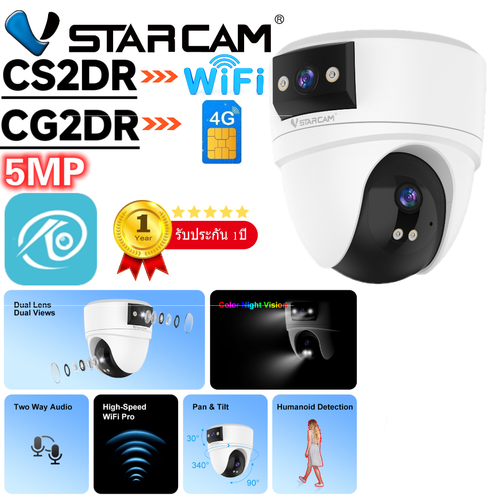 VSTARCAM CS2DR WiFi / CG2DR 4G LTE SIM SUPER HD 1296P 5MP x 2 เลนส์กล้อง กล้องวงจรปิด iP Camera