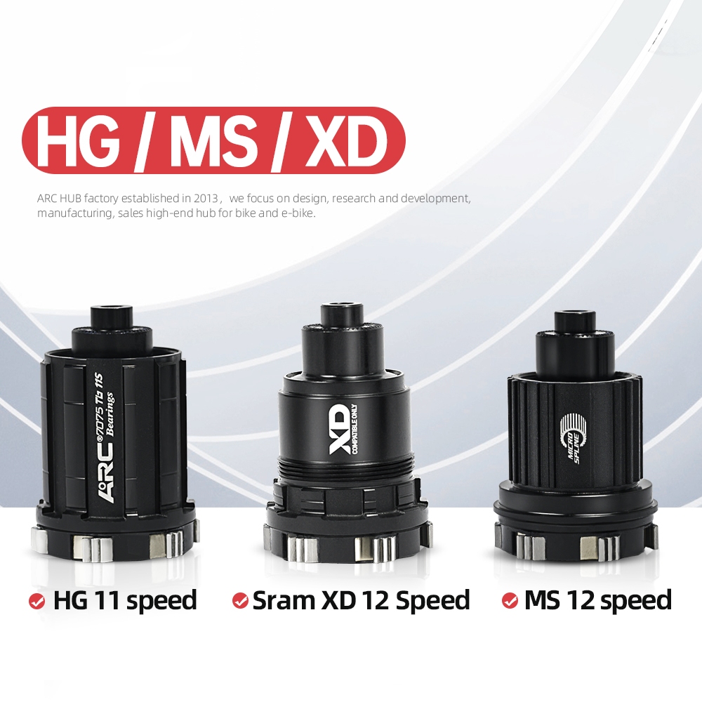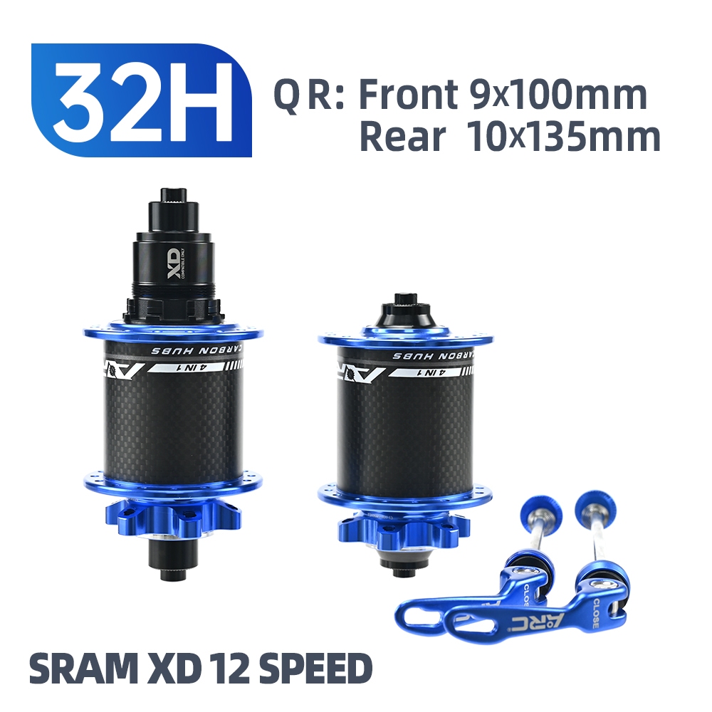 ARC MT010F/R PRO สีฟ้าและสีทอง 32 หลุมคาร์บอน Fibre MTB Hub Shimano HG Micro Spline XD 12s Quick Release Thru เพลาคุณภาพสูง 6 Pawls Hub ชิ้นส่วนจักรยาน S & S 6 แบริ่งปิดผนึก