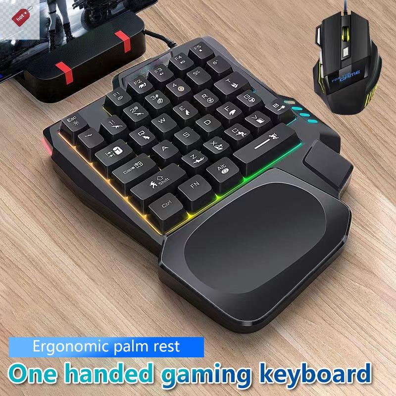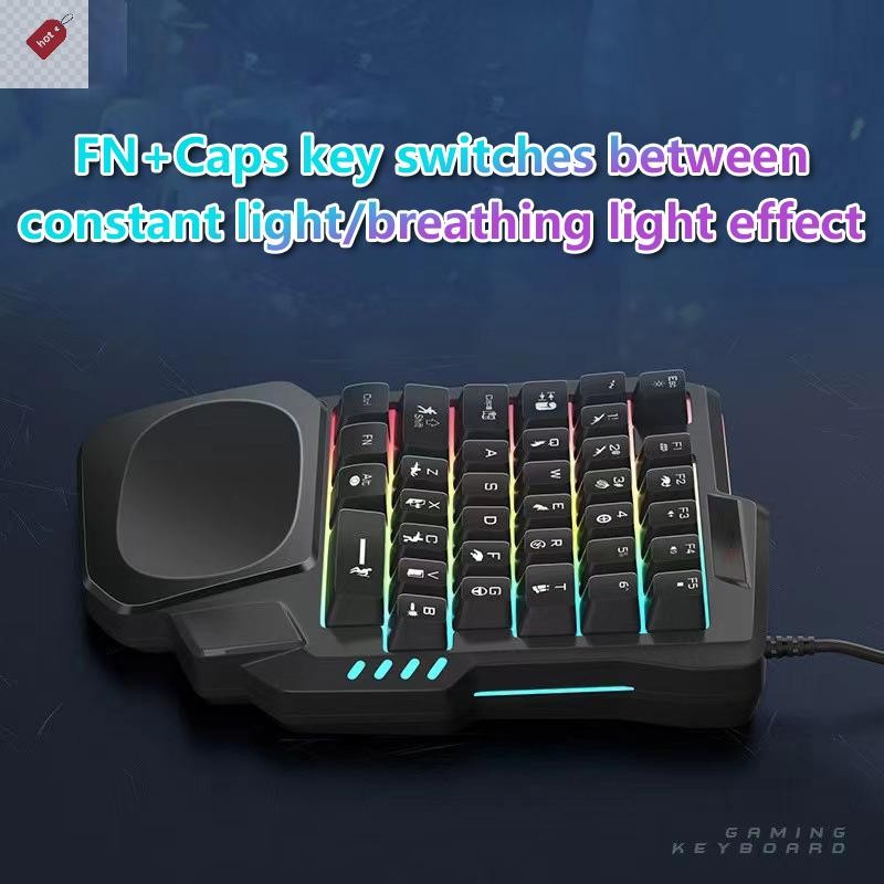 ALIK RGB คีย์บอร์ดเกมมือเดียว Mini USB Ultra-slim แบบมีสาย 35 คีย์ OneHandedly Backlight คีย์บอร์ดสําหรับคอมพิวเตอร์ PC แล็ปท็อป TH