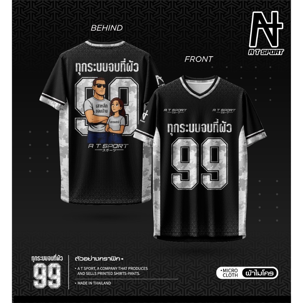 เสื้อกีฬาพิมพ์ลาย A T SPORT รุ่น A T ทุกระบบ จบที่ผัว(แขนสั้น) สีสดใส คมชัด ใส่สะบาย แห้งไว ระบายอากาศได้ดี