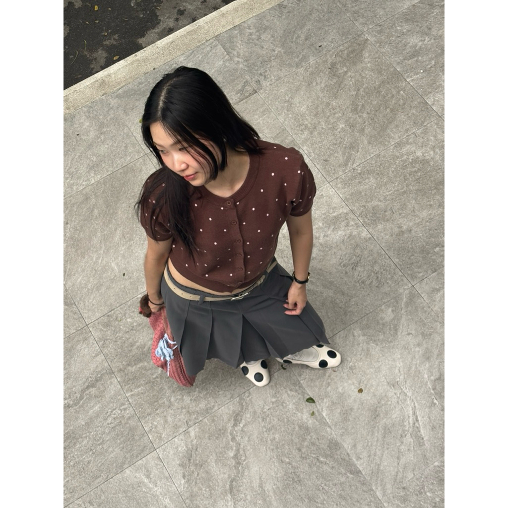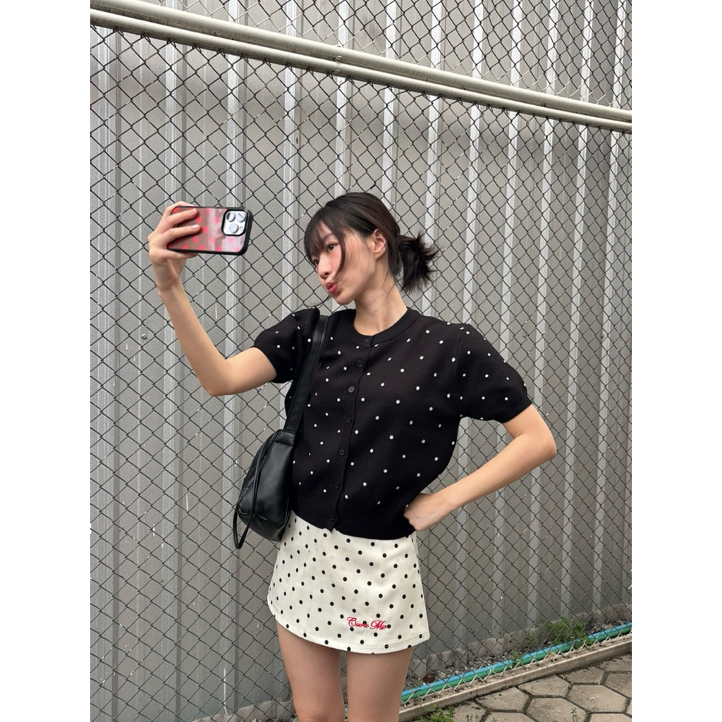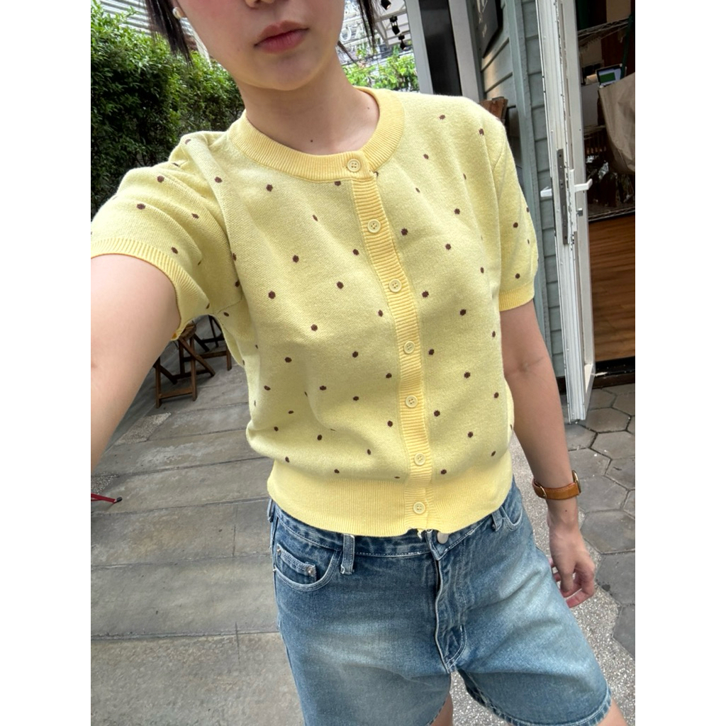 เสื้อไหมพรมลาย polka dot เป็นแขนสั้น สามารถใส่ได้ทุกวัน จะ