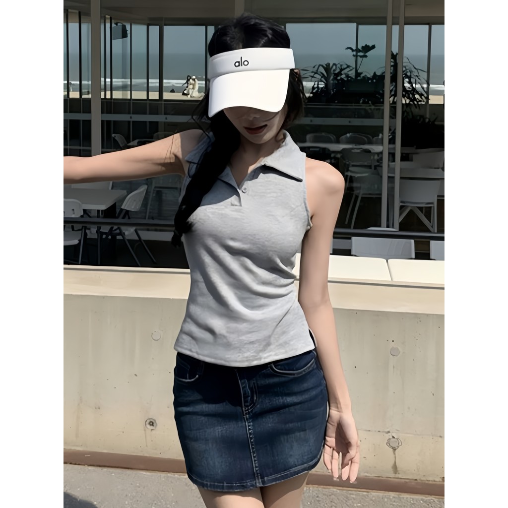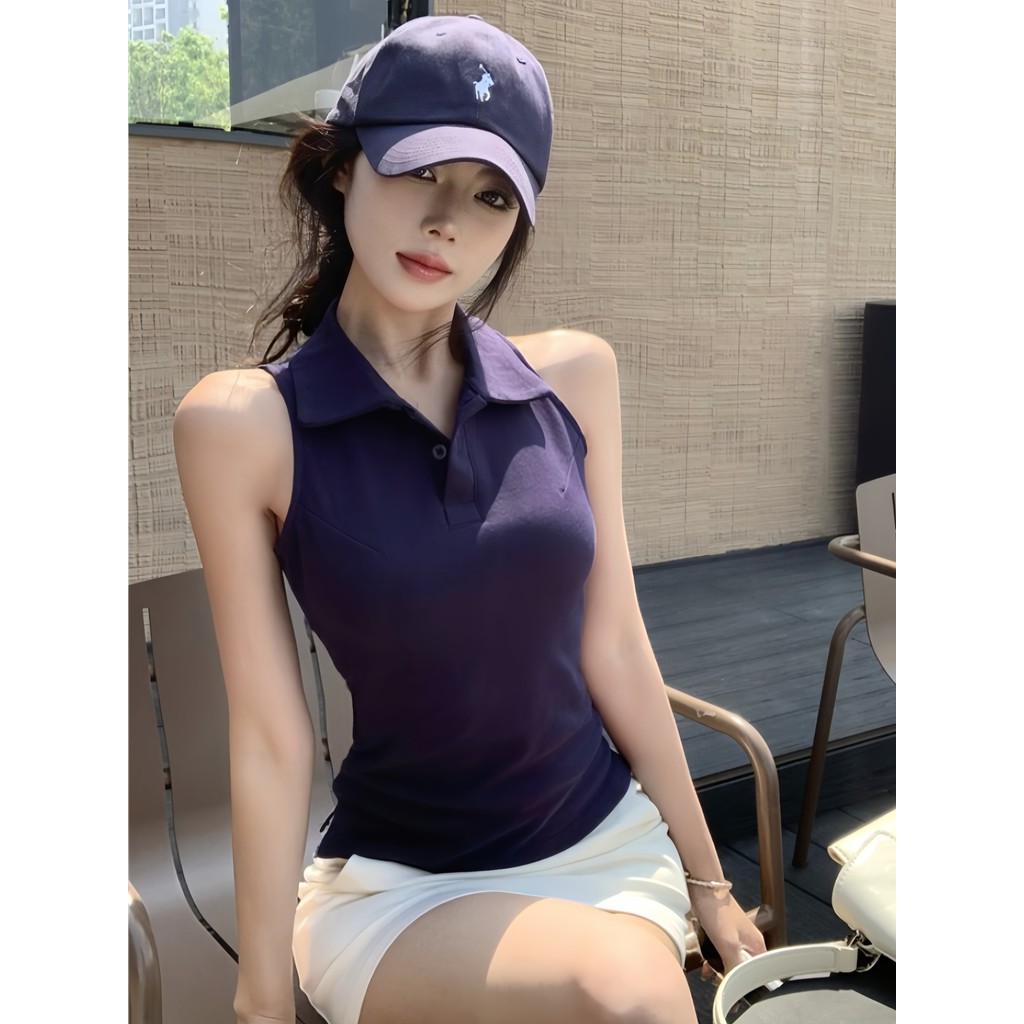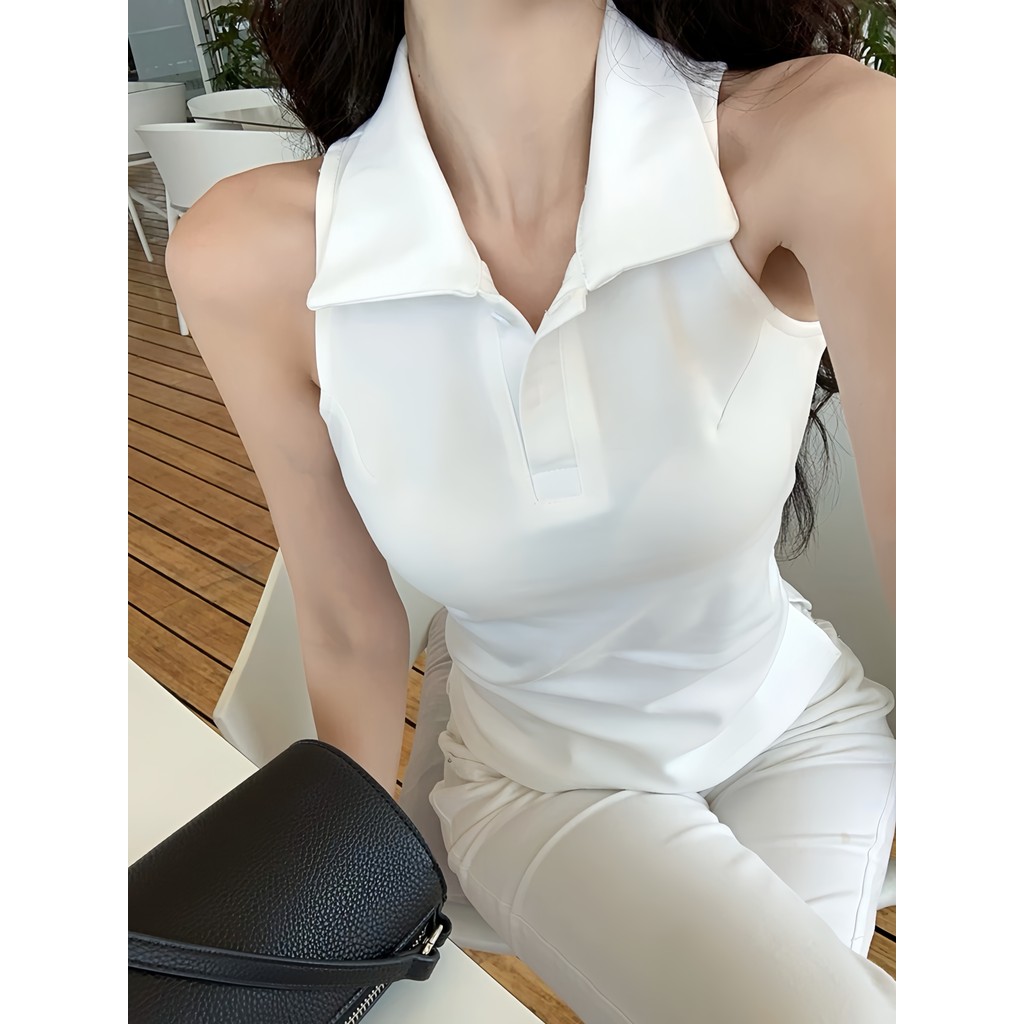 SultrySia เสื้อครอปสำหรับผู้หญิง เสื้อคอปกแขนกุด สีพื้นใส่สบายมาก คาวาอี้ เสริมฟองน่ำ “FY33031”