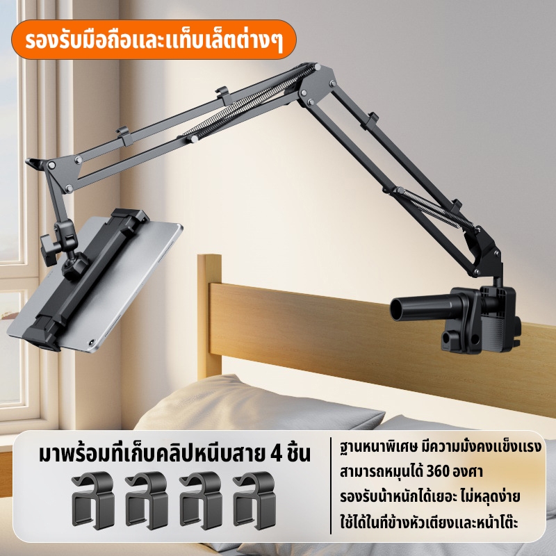 ipad stand หนีบโต๊ะ หนีบเตียง ปรับ360องศา ขาจับมือถือ ใช้ได้กับมือถือ/แท็บเล็ต พับได้ ที่วางไอแพด ขาตั้งโทรศัพท์มือถือ