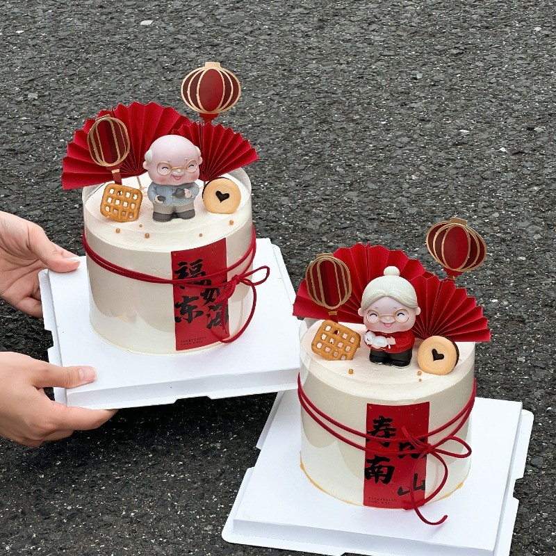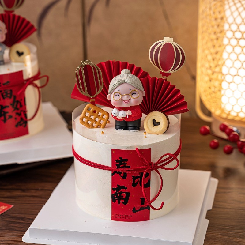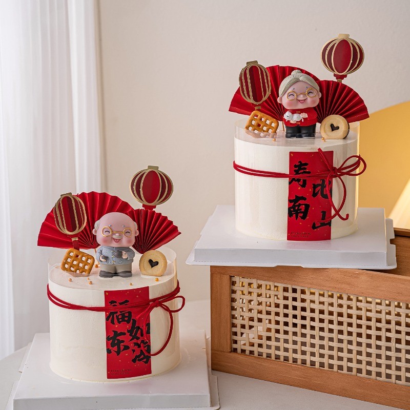 ชุดตกแต่งเค้กวันเกิด ออกแบบมาเป็นพิเศษสำหรับผู้สูงอายุชาวจีนในการเฉลิมฉลองวันเกิด เป็นงานรื่นเริงแบบดั้งเดิมและเหมาะสำหรับงานวันเกิดของคุณปู่ย่าตายายและผู้สูงอายุคนอื่น ๆ ในชุดประกอบด้วยสติกเกอร์พรคลาสสิกและปลั๊กอินประดับตกแต่