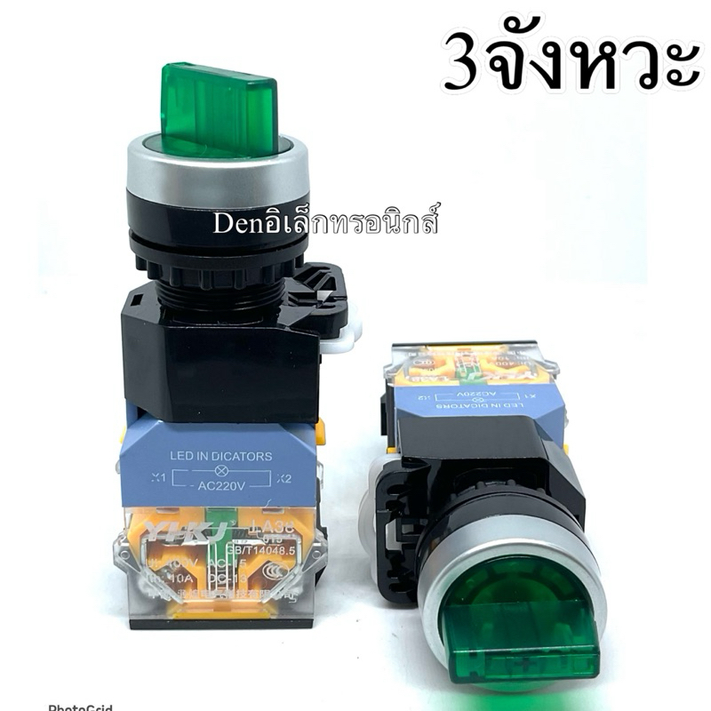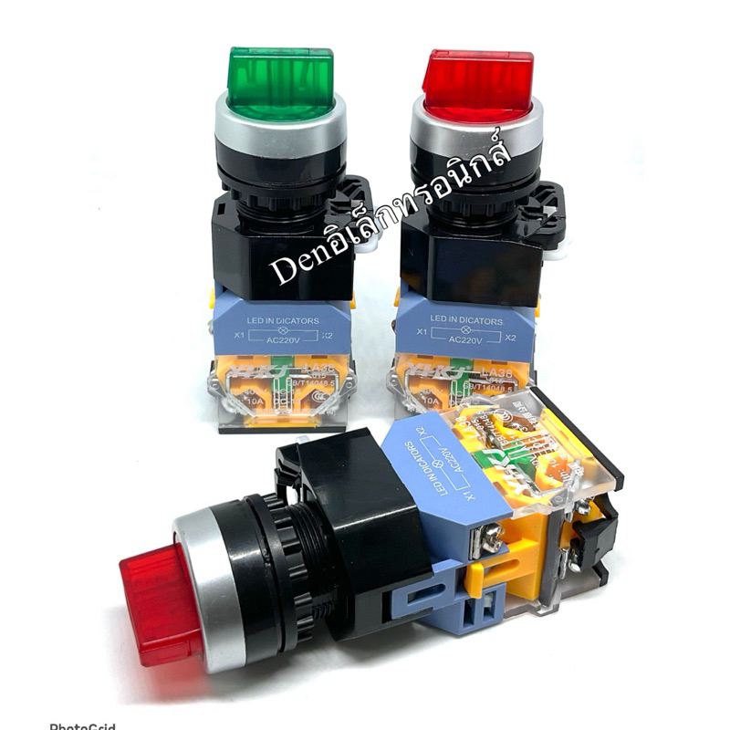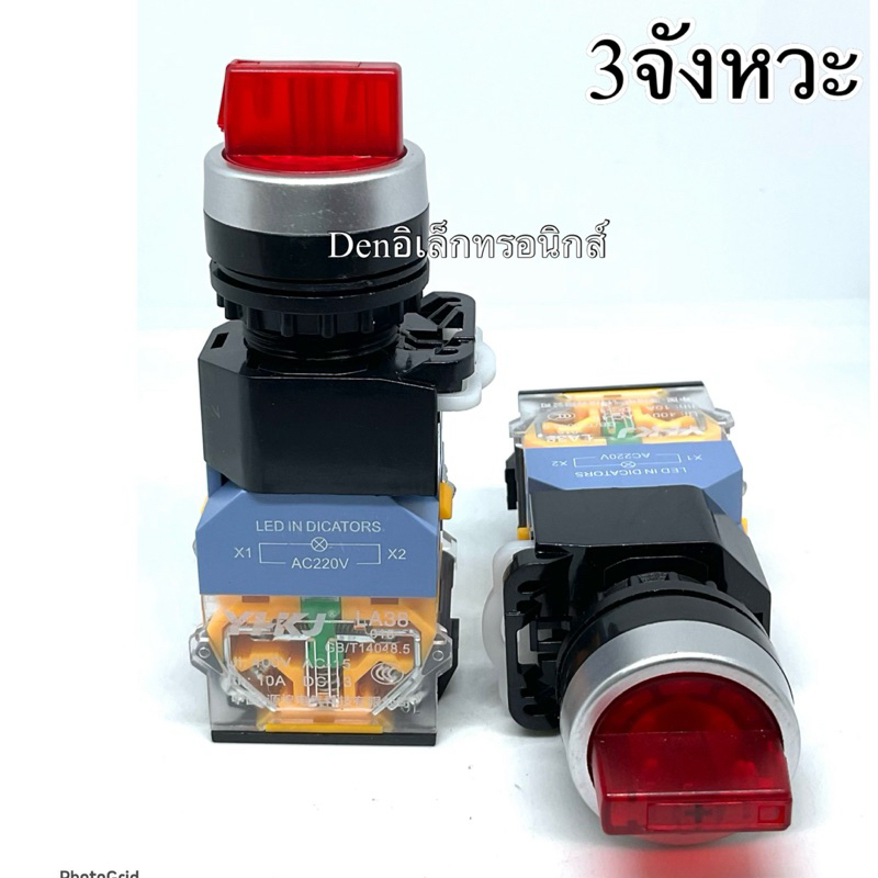 สวิตช์2จังหวะ 3จังหวะ มีไฟ ปิดหมุน ซ้าย ขวา LA38-11X2 20X3 22mm 220VAC