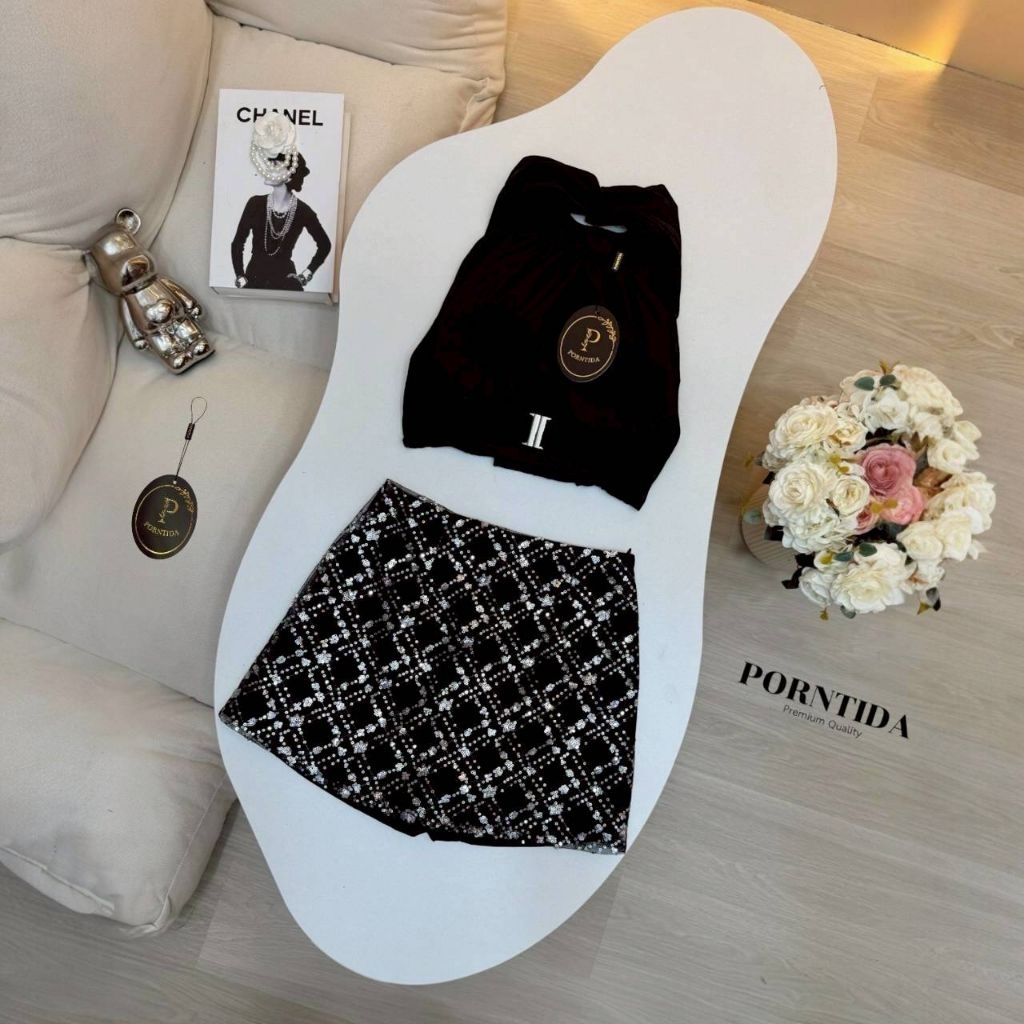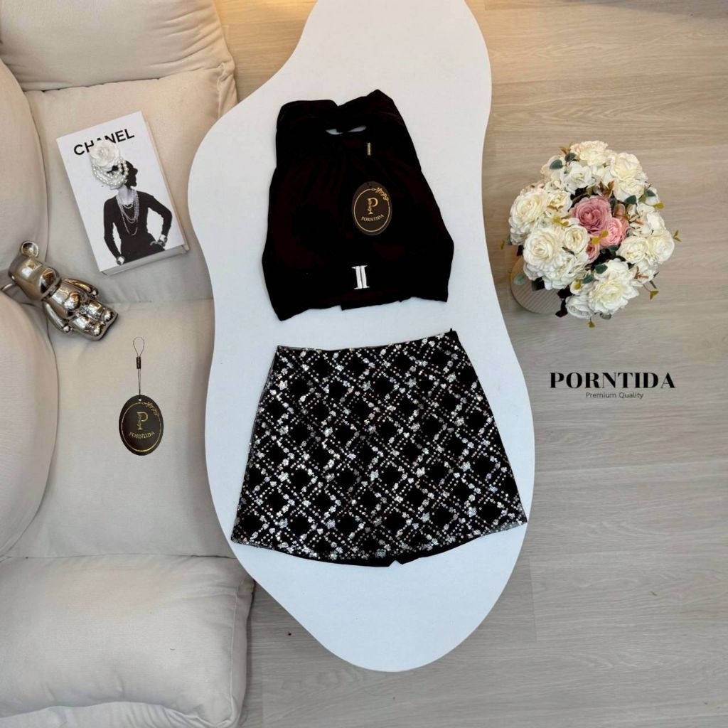 Detail : ชุดเซต 2 ชิ้น เสื้อสีดำหน้าอกเสริมฟองนมงานตะขอโชว์หลัง+ กางเกงสีดำด้านนอกเป็นผ้ากระโปรงรุ่นนี้สวยเซ็กซี่ปังมากค่ะ