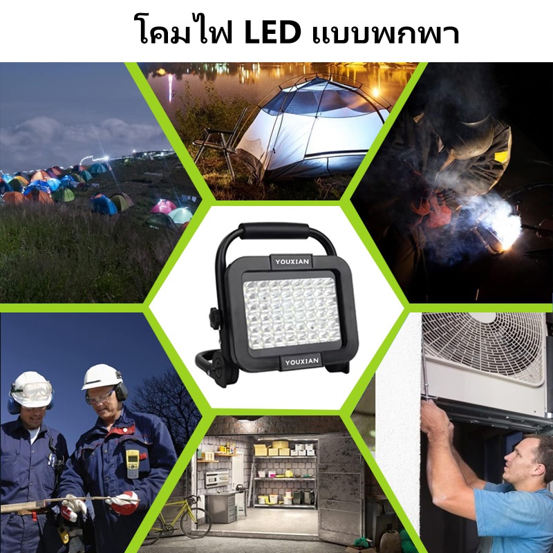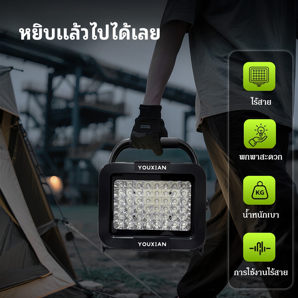 YOUXIAN สปอร์ตไลท์พกพา LED • ความสว่างสูง Super Bright • USB ไร้สาย • สำหรับกลางแจ้ง/ความปลอดภัย
