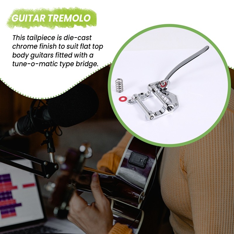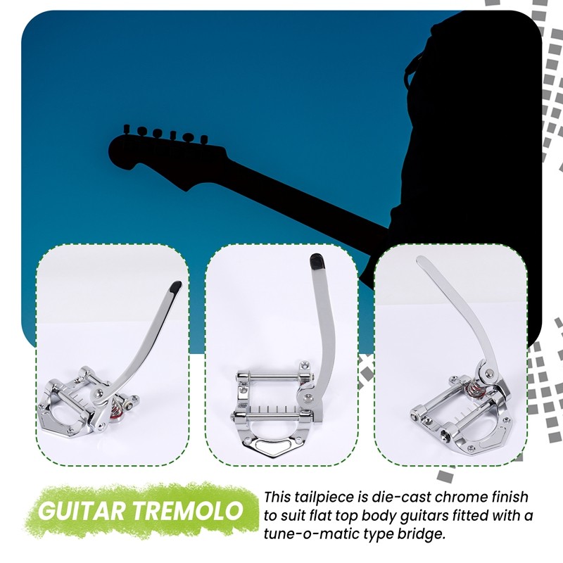 | Model | กีตาร์ Vibrato Tailpiece Tremolo Flat Top Body Tremolo Unit Vibrato Bridge สําหรับ Tele, LP, กีตาร์ไฟฟ้า ETC (สีเงิน) |