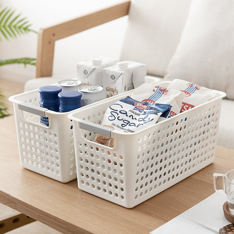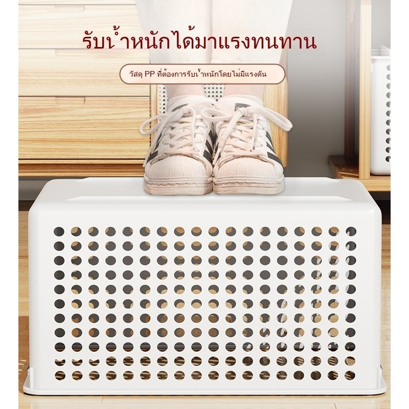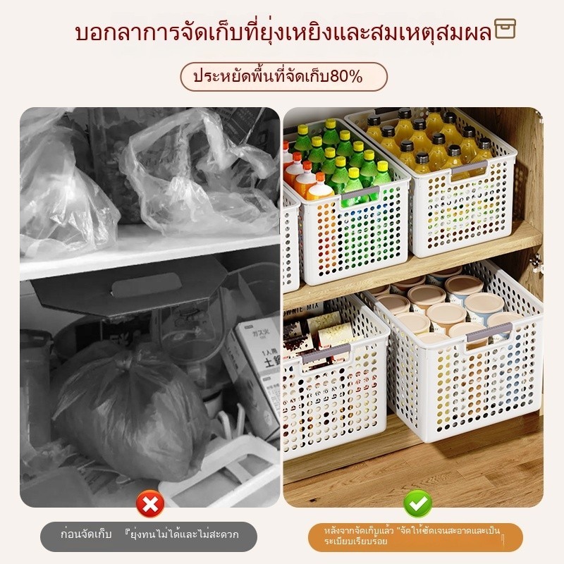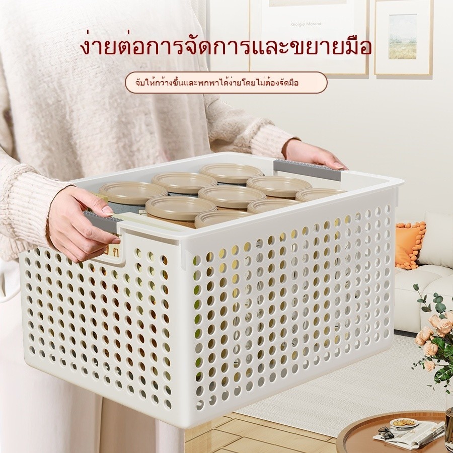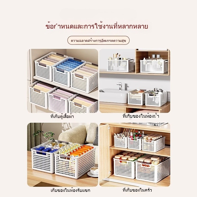 กล่องเก็บของ ตะกร้าเก็บของ ตะกร้าอเนกประสงค์สีขาว ตะกร้าเหลี่ยม กล่องพลาสติก ใส่ของใช้ทั่วไ ประหยัดพื้นที่ มี 7 ขนาด