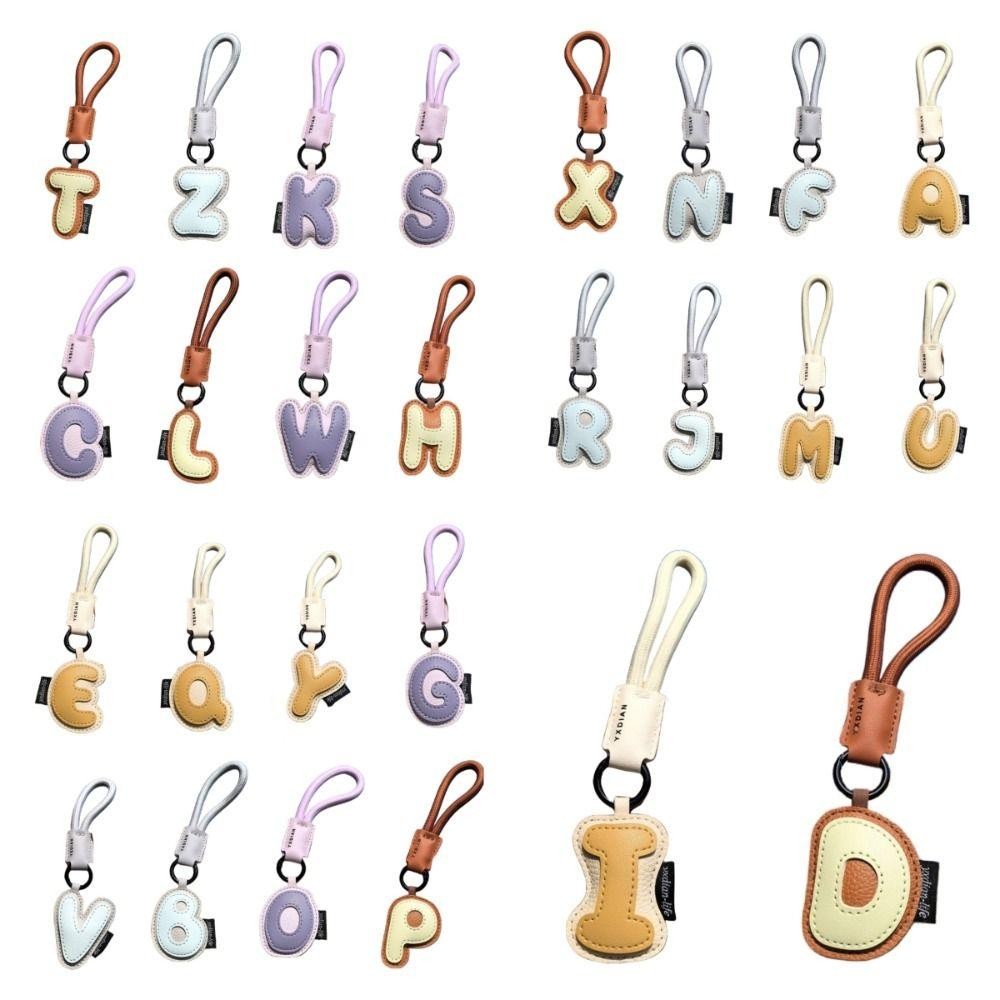 LEOTA 26 พวงกุญแจตัวอักษร, กระเป๋าพวงกุญแจรถแขวน Charms ตัวอักษรผู้ถือกุญแจ, สีปิดกั้นเครื่องประดับหวาน PU หนัง Lucky Letter จี้ของขวัญ