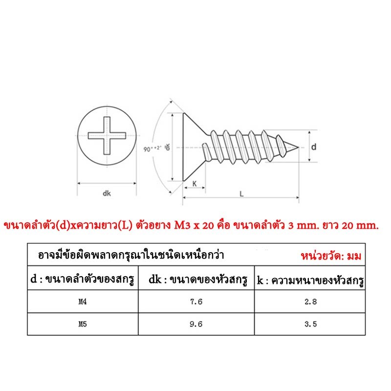 เส้นผ่านศูนย์กลาง: M3 (3 มม.), M3.5 (3.5 มม.), M4 (4 มม.), M5 (5 มม.)