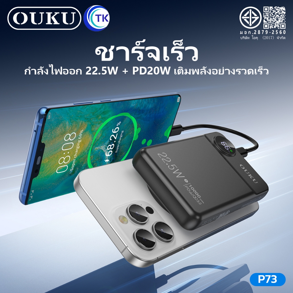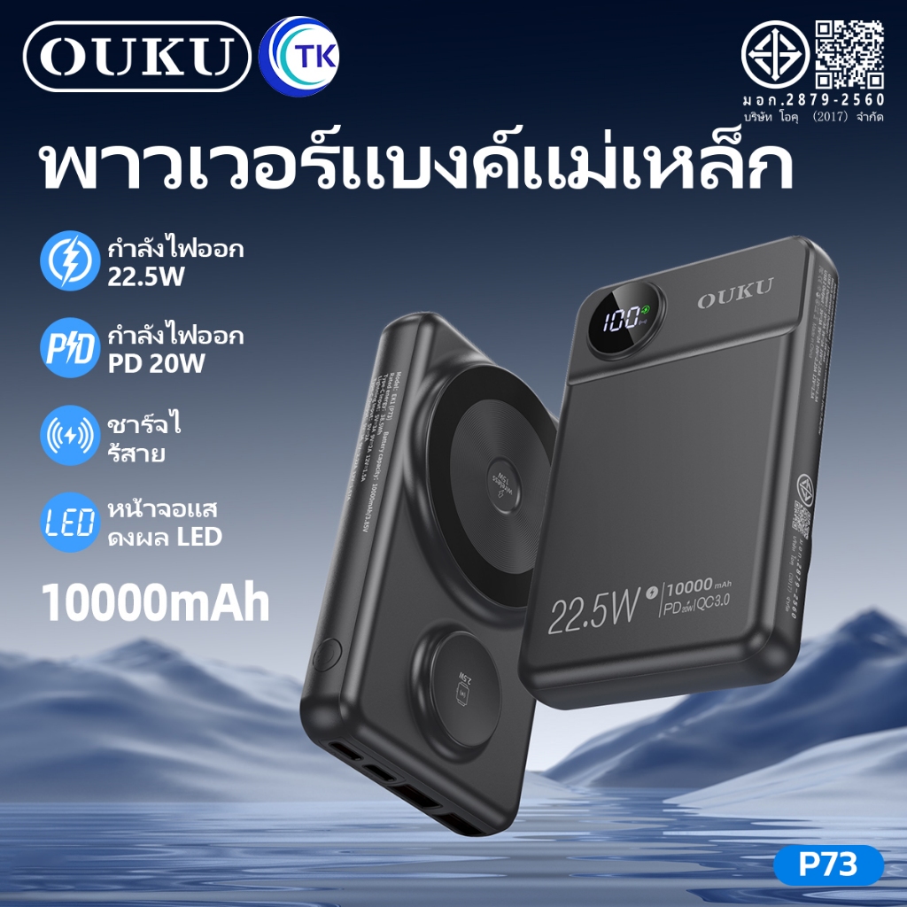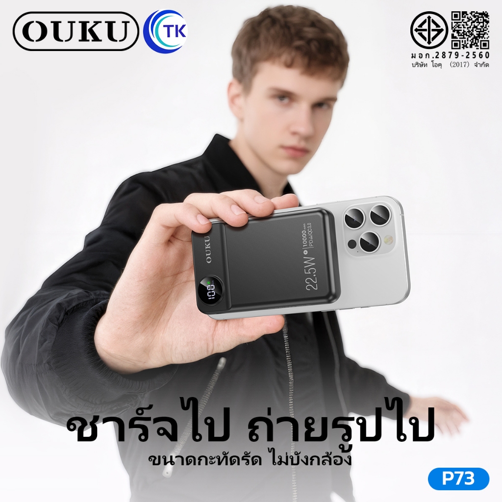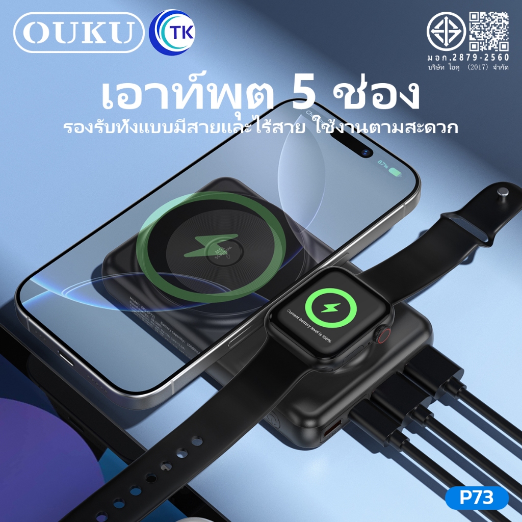 พาวเวอร์แบงค์แม่เหล็กไร้สาย OUKU P73 10000mAh ชาร์จเร็ว22.5W ชาร์จนาฬิกาและโทรศัพท์มือถือได้