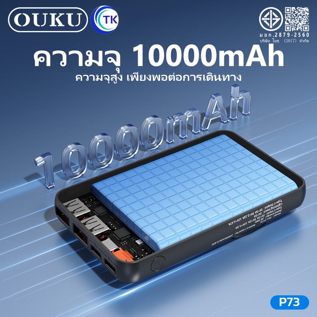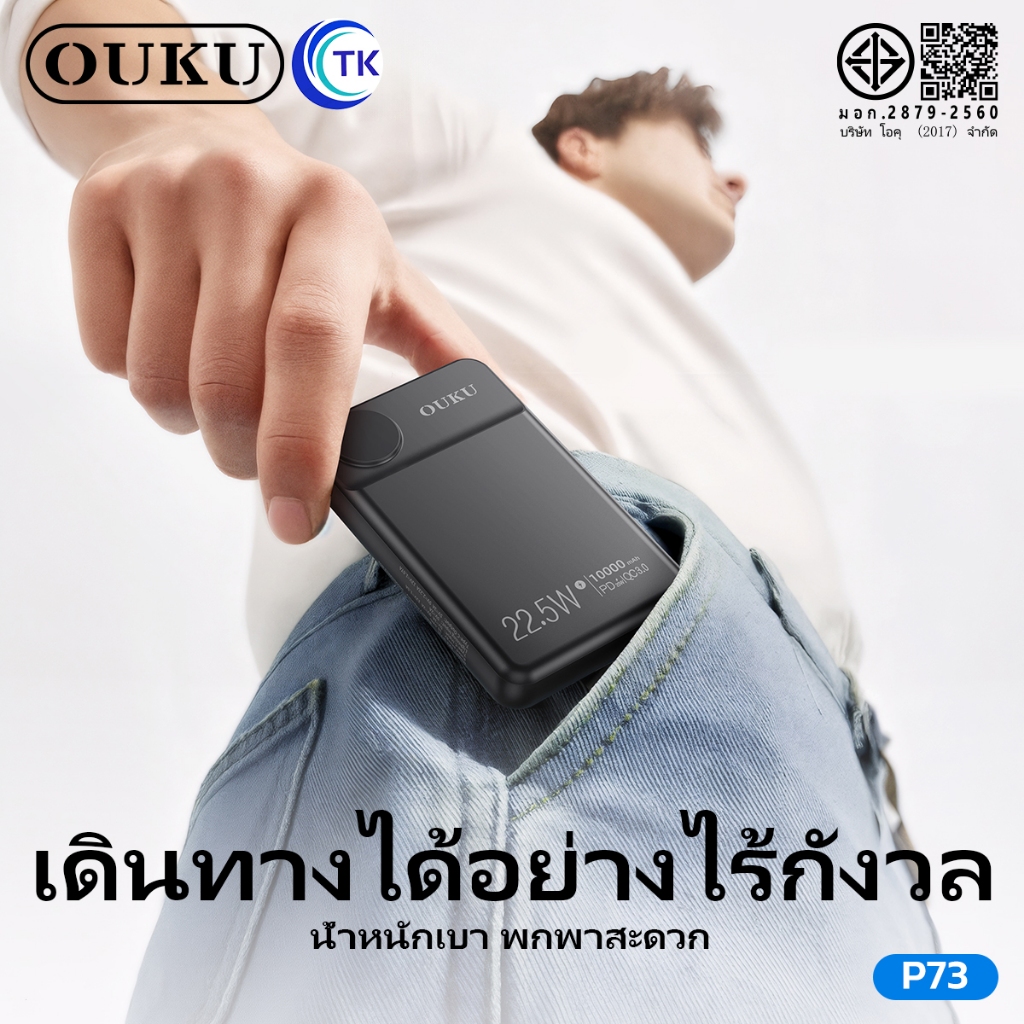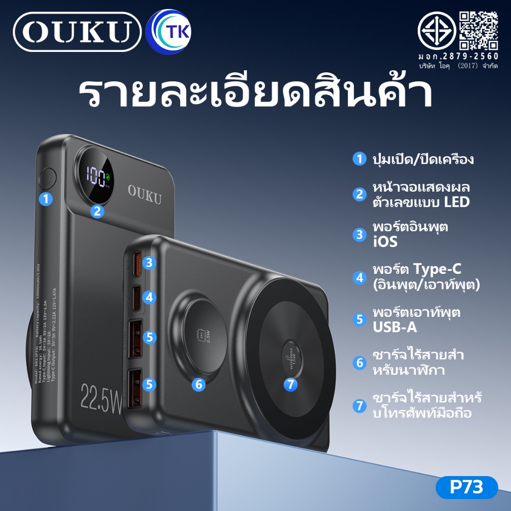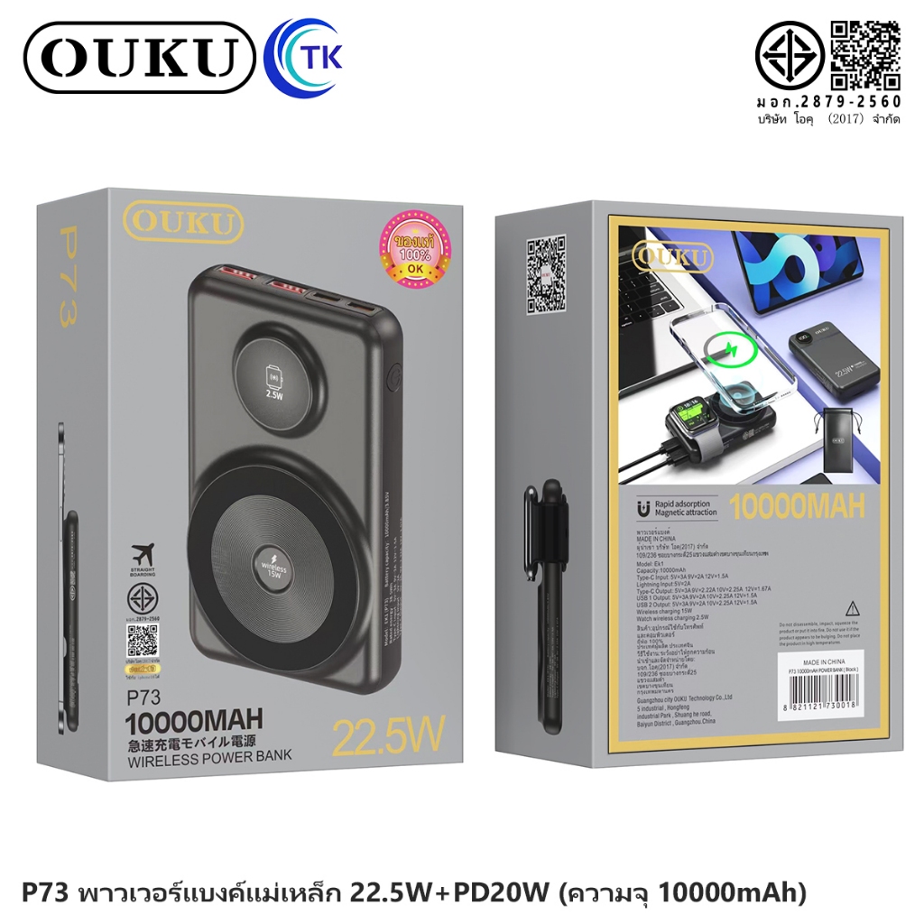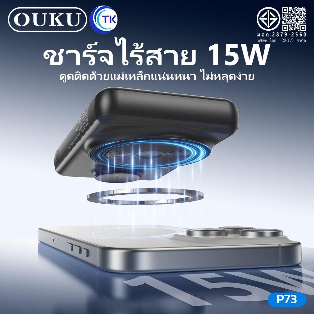 พาวเวอร์แบงค์แม่เหล็กไร้สาย OUKU P73 10000mAh ชาร์จเร็ว22.5W ชาร์จนาฬิกาและโทรศัพท์มือถือได้