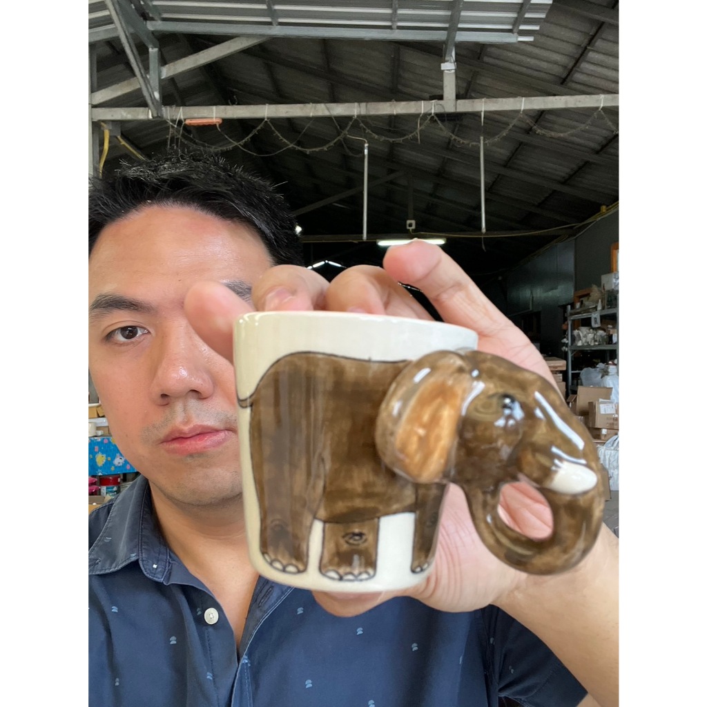 หยิบใส่ตะกร้าแก้วช็อตเซรามิก แก้วเอส แก้วกาแฟลายช้าง ขนาด4oz เนื้อสโตนแวร์ stoneware ceramic ออกใบกำกับภาษีได้ รหัสkornz25868