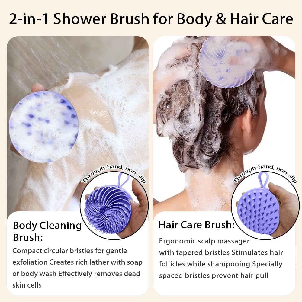 * 2-in-1 Silicone Scalp Massager & Body Scrubber ช่วยผลัดเซลล์ผิวอย่างอ่อนโยนพร้อมกระตุ้นหนังศีรษะเพื่อความสดชื่นสะอาด