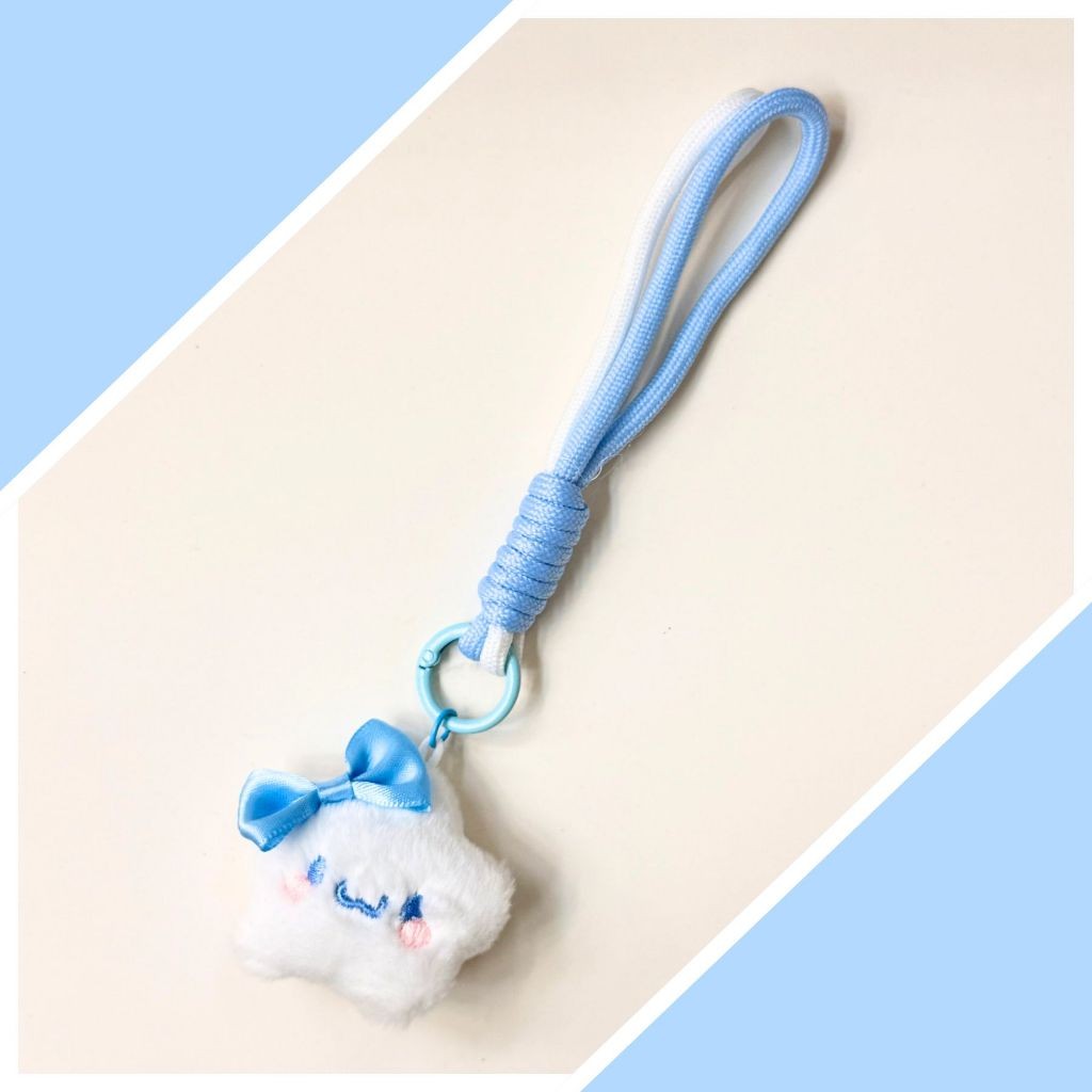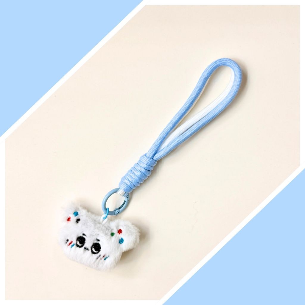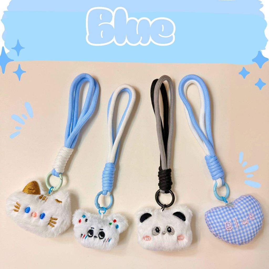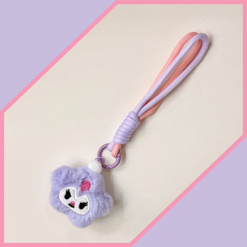 สายคล้องการ์ตูนนิ่มนุ่ม สำหรับแขวนกุญแจ-กระเป๋า สายคล้องการ์ตูนหนาแน่น สีสดใส 2 เส้น พร้อมห่วงกลมแข็งแรง