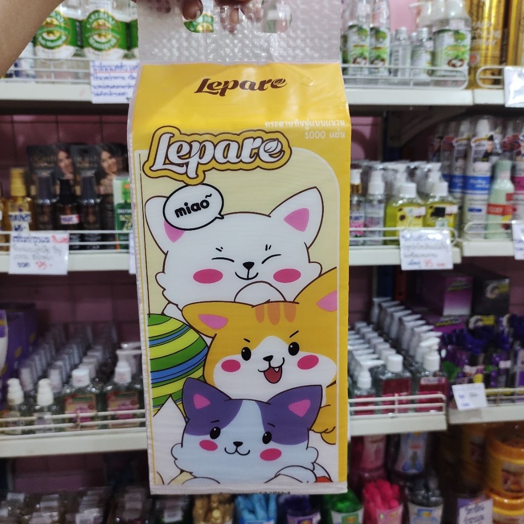 กระดาษทิชชู่แขวน Lepare Miao สำหรับใช้เช็ดมือ ปาก และใบหน้าผลิตจากเยื่อกระดาษบริสุทธิ์มีจำนวน 1,000 แผ่นต่อแพ็ค