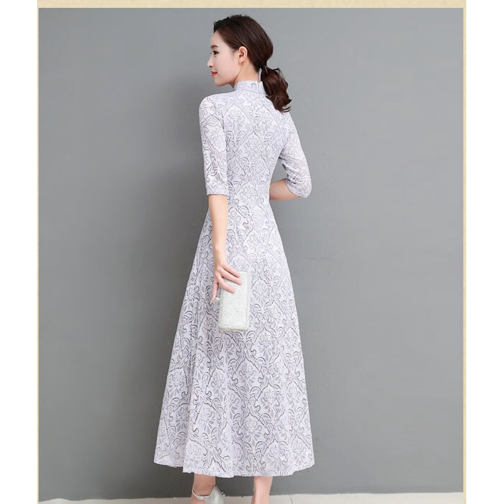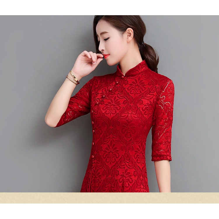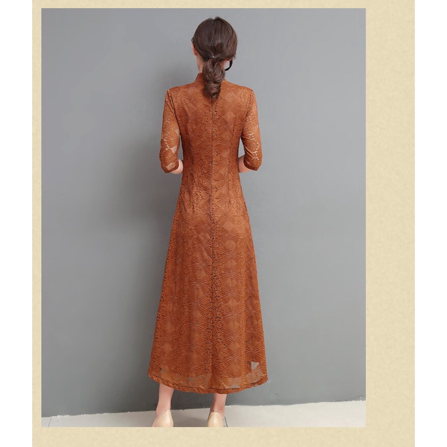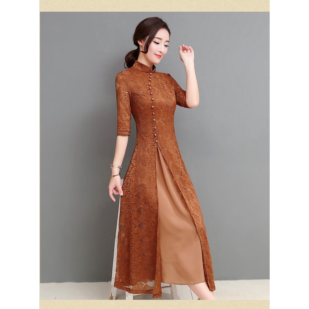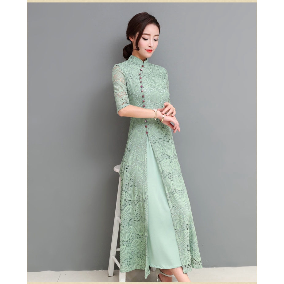 เวียดนาม Ao Dai ผู้หญิง Retro Oriental Cheongsam Cheongsam ลูกไม้ผอมปักชุดแต่งงาน Ao Dai เครื่องแต่งกาย