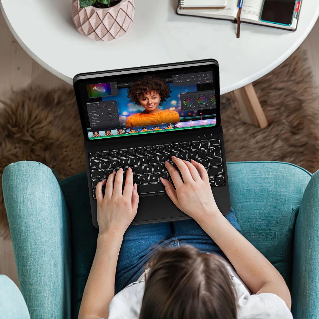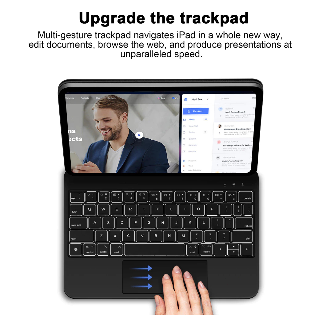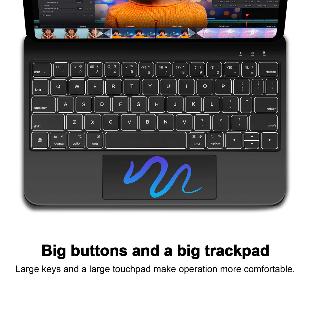 การจับคู่ที่สมบูรณ์แบบสําหรับคุณ – แป้นพิมพ์เลย์เอาต์มาตรฐานพร้อมแทร็คแพดขนาดใหญ่พิเศษที่รวมเคอร์เซอร์และท่าทางสัมผัสแบบ Multi-Touch ในการออกแบบการระงับแบบแม่เหล็กและการดูดแม่เหล็กที่แข็งแกร่งช่วยให้มั่นใจได้ถึงการใช้งานประจําวันที่ปลอดภัยสําหรับคุณ