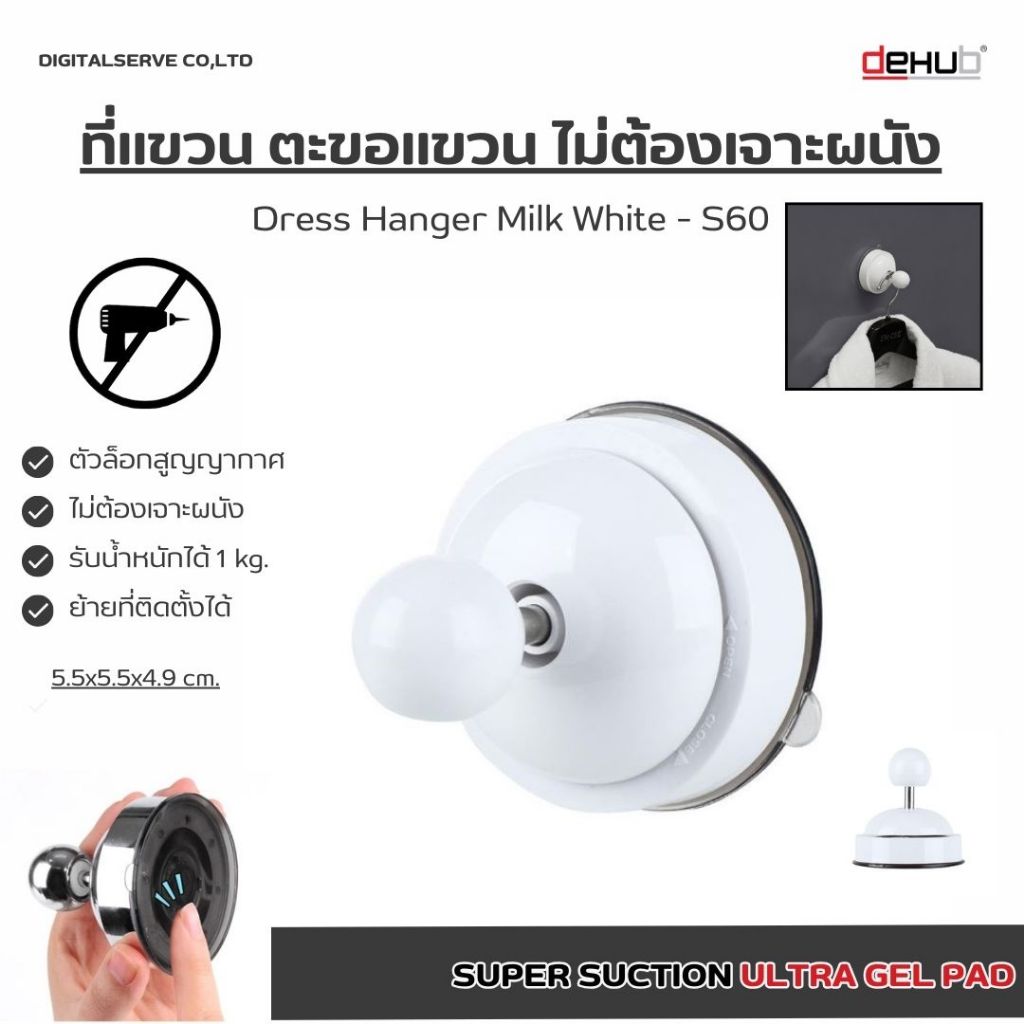 Dehub ตะขอแขวนติดผนัง ที่แขวนผ้า ติดผนังไม่เจาะ ตัวล็อกสูญญากาศ แขวนเสื้อผ้า ผ้าเช็ดตัว Dress hanger