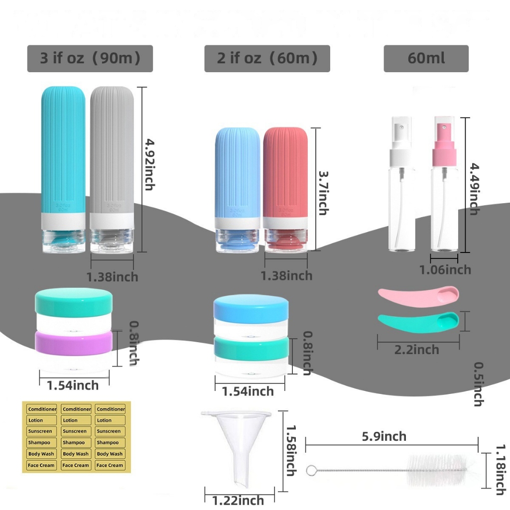 16ชิ้น ซิลิโคนขวดเดินทาง 90ml 60ml กันรั่วซึม แชมพูเจลอาบน้ำ รีฟิลได้ พร้อมกระเป๋าใสพกพา นักเดินทางจำเป็น