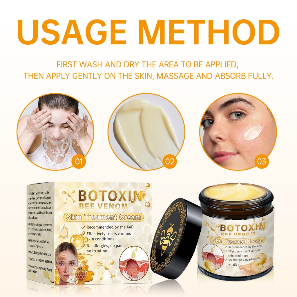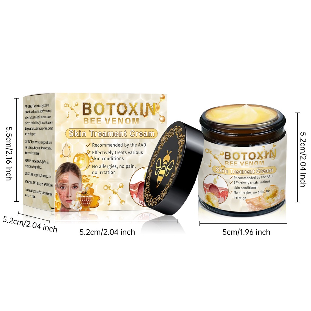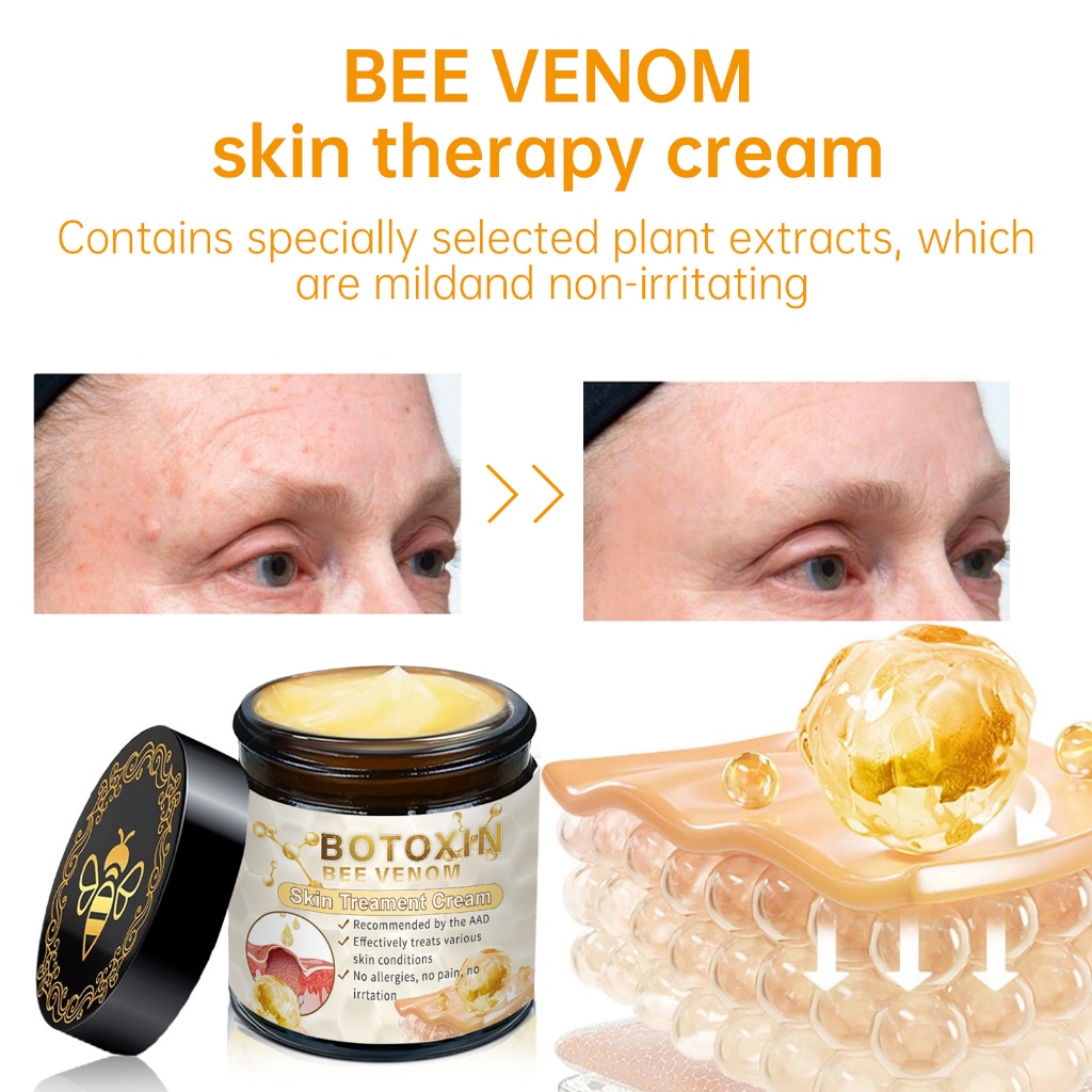 กังวลเกี่ยวกับกระแทกเล็กน้อยบนใบหน้าและขวดบนร่างกาย? อย่าตกใจ! ครีมซ่อมผิวผึ้ง BOTOXIN Bee Venom นี้ถูกสร้างขึ้นด้วยพิษผึ้งธรรมชาติและสารสกัดจากพืช ทําให้มันปลอดภัยสำหรับผิวที่มีความไวในการใช้งาน มั