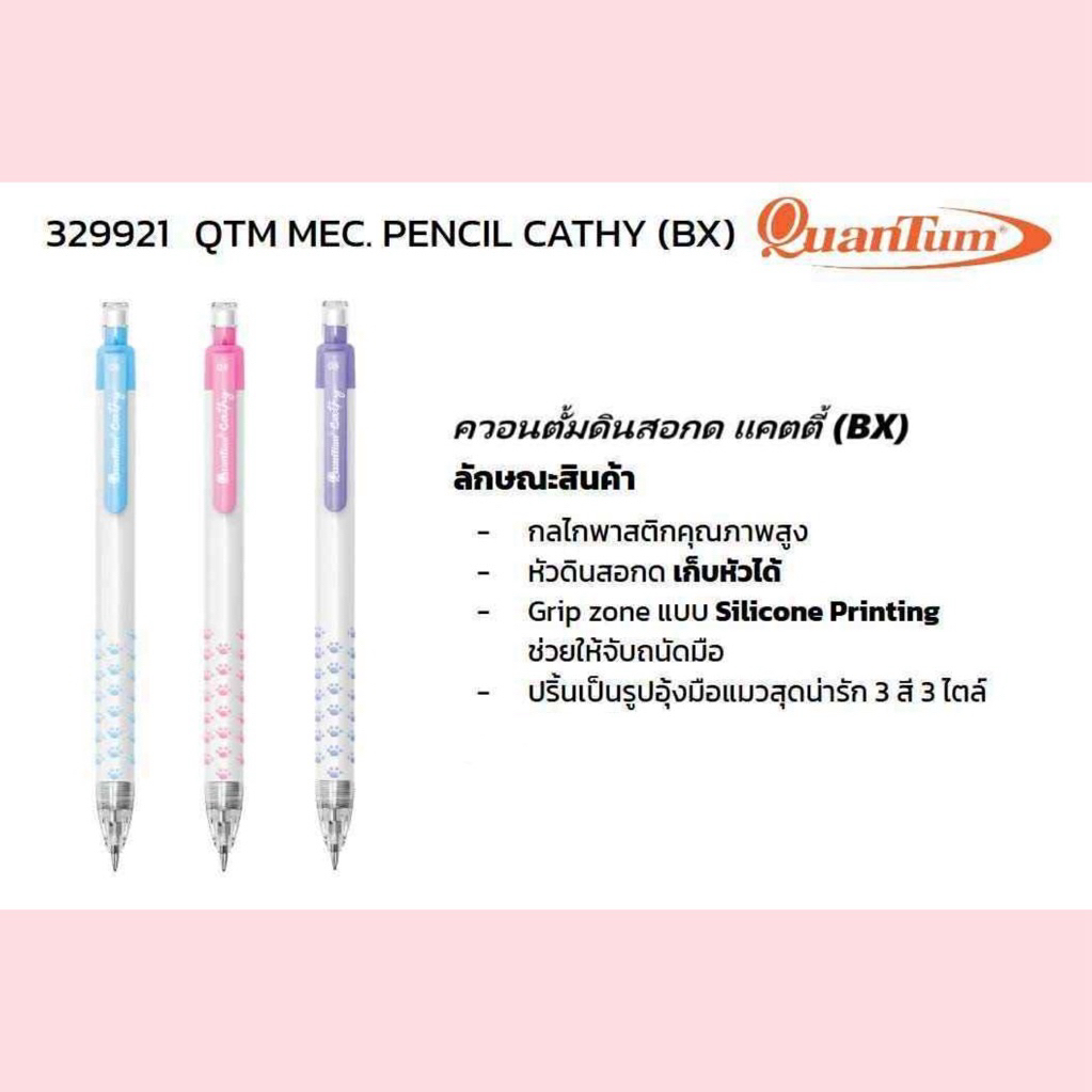ดินสอกด ควอนตัม รุ่น Cathy ลายอุ้งเท้าน้องเหมียว สุดน่ารัก มีให้เลือก 3 สีค่ะ สีพาสเทล น่ารักทุกสีค่ะ (0.5mm)