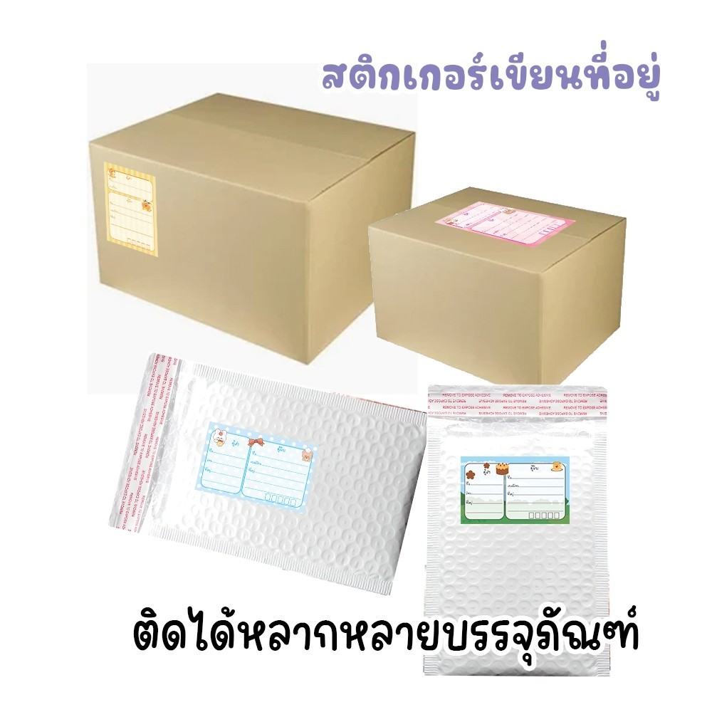 สติกเกอร์เขียนที่อยู่ 5.5×9 ซม. ลายน่ารัก🐻 สติ๊กเกอร์ติดกล่องพัสดุ สติ๊กเกอร์ติดของ พร้อมช่องกรอกครบ