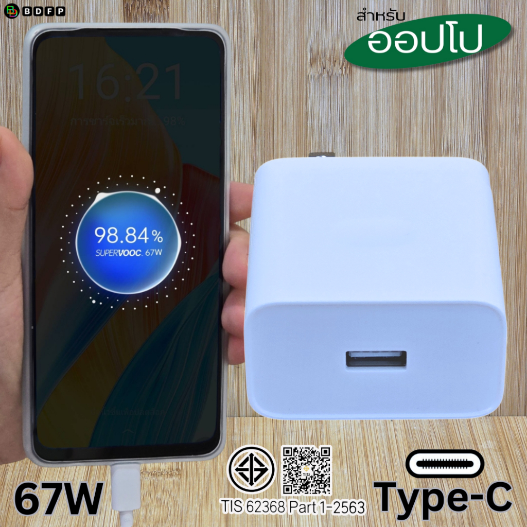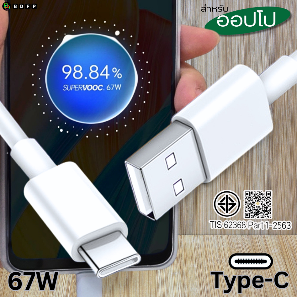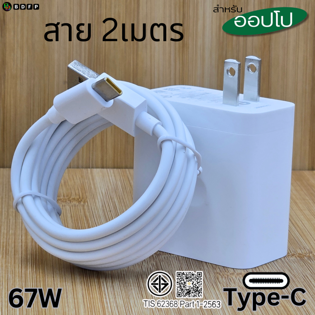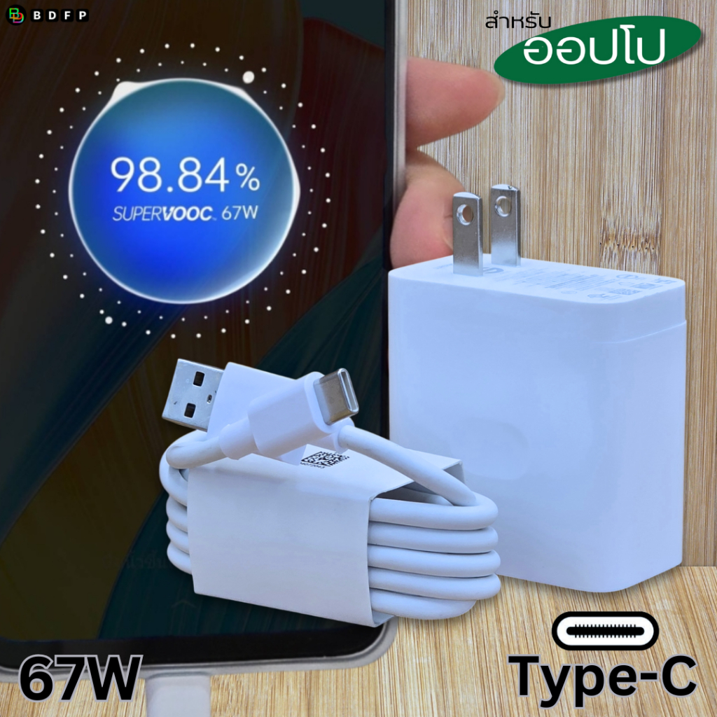 ที่ชาร์จ 67W Type-C BDFP สำหรับ OPPO Super VOOC สำหรับ รองรับการชาร์จด่วน หัวชาร์จ สายชาร์จ 1-2เมตร รับประกันสินค้า 1ปี