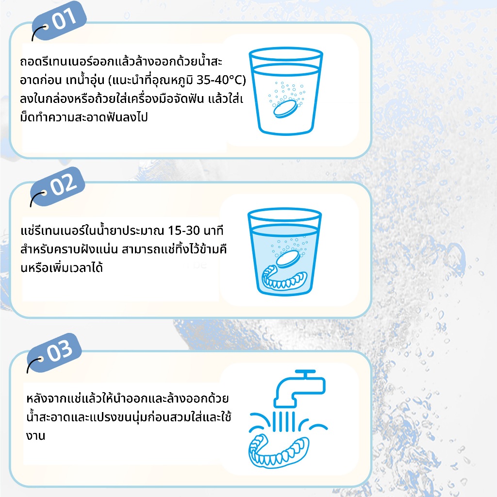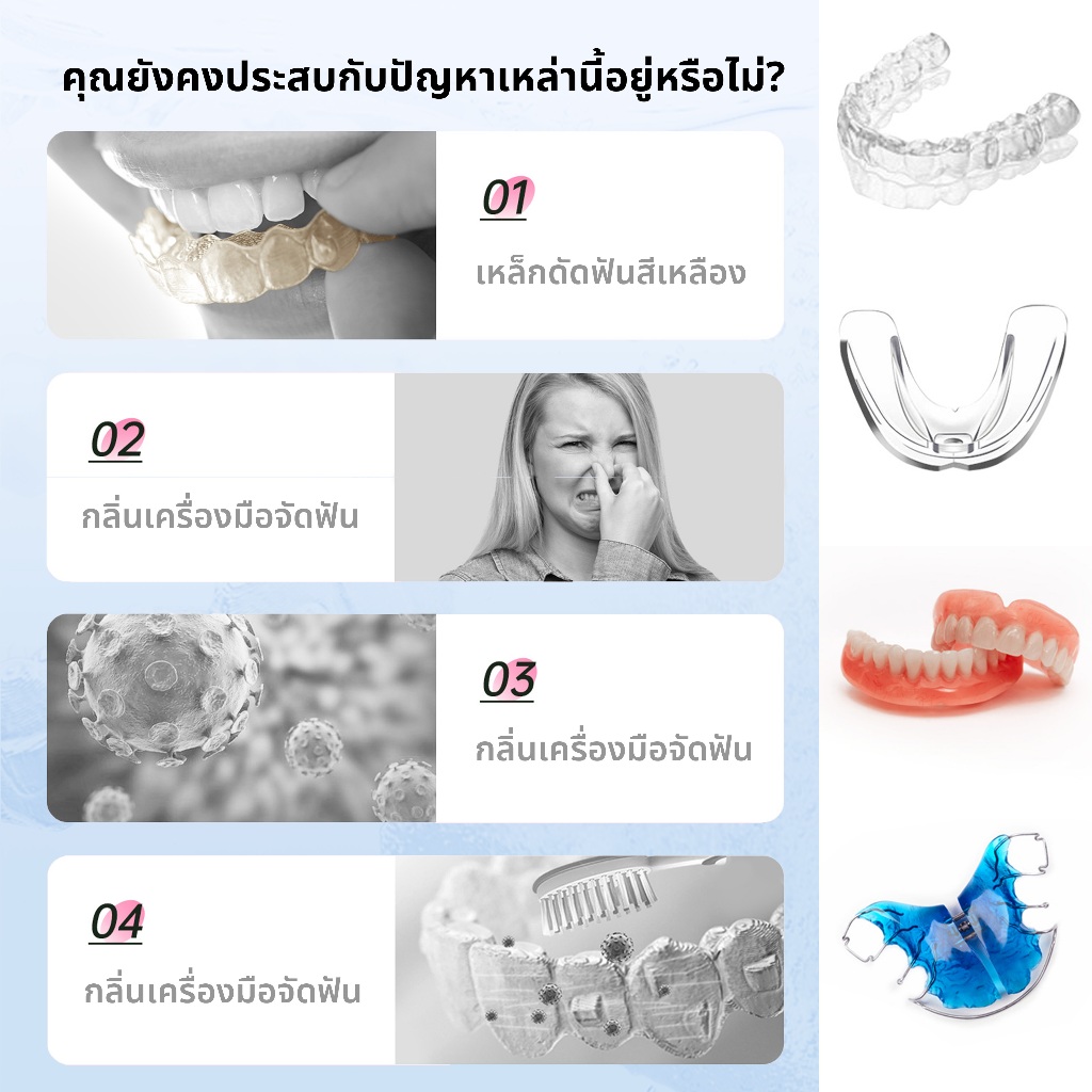 ใช้งานได้: รีเทนเนอร์, อุปกรณ์จัดฟัน, เครื่องมือจัดฟัน, ฟันจัดฟันที่มองไม่เห็น สําหรับทําความสะอาดรีเทนเนอร์