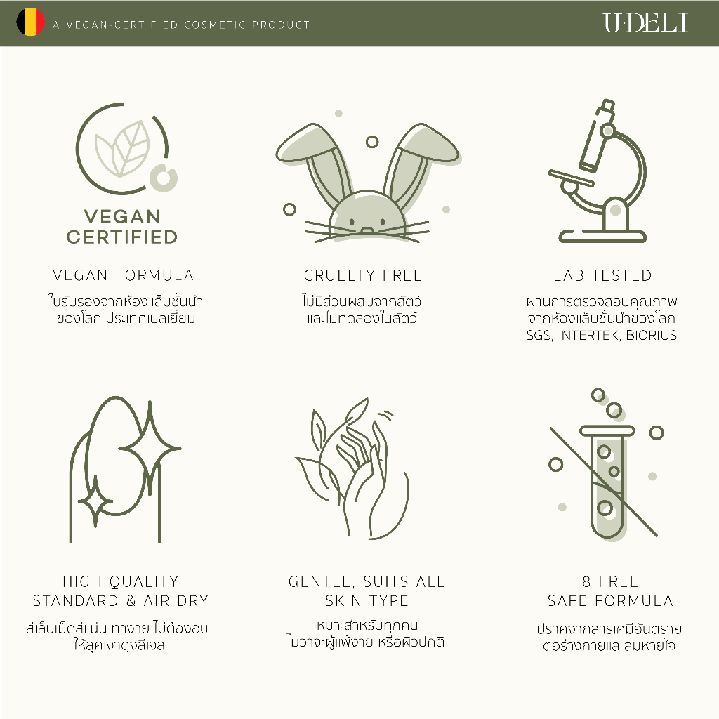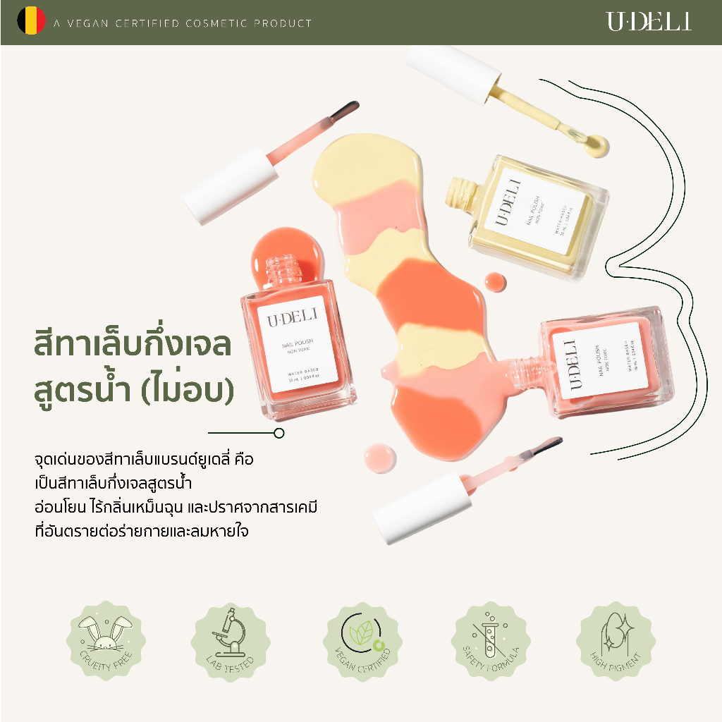 สีทาเล็บกึ่งเจล U-DELI Nailpolish คุณภาพดี ผ่านการรับรองคุณภาพของสีเล็บจากบริษัาชั้นนำ SGS และ Intertek