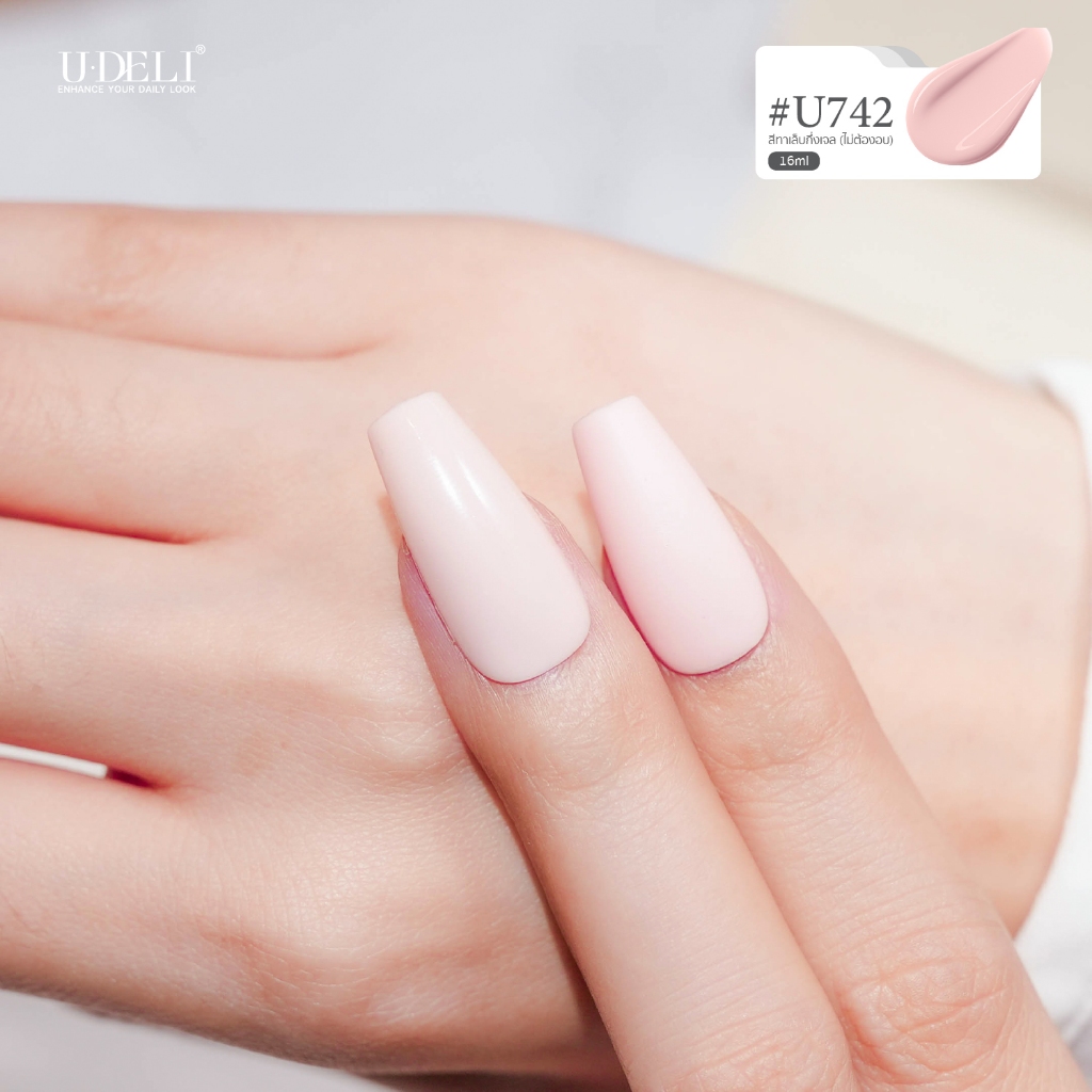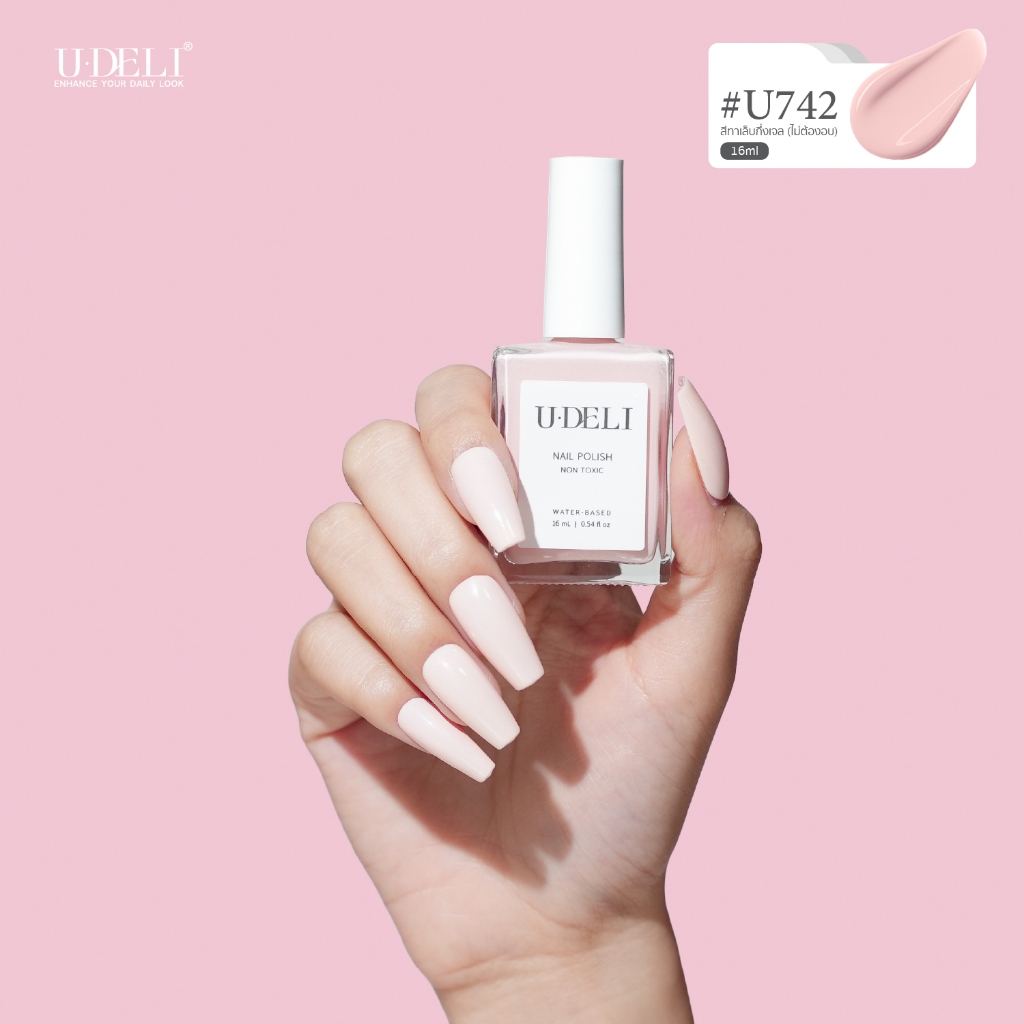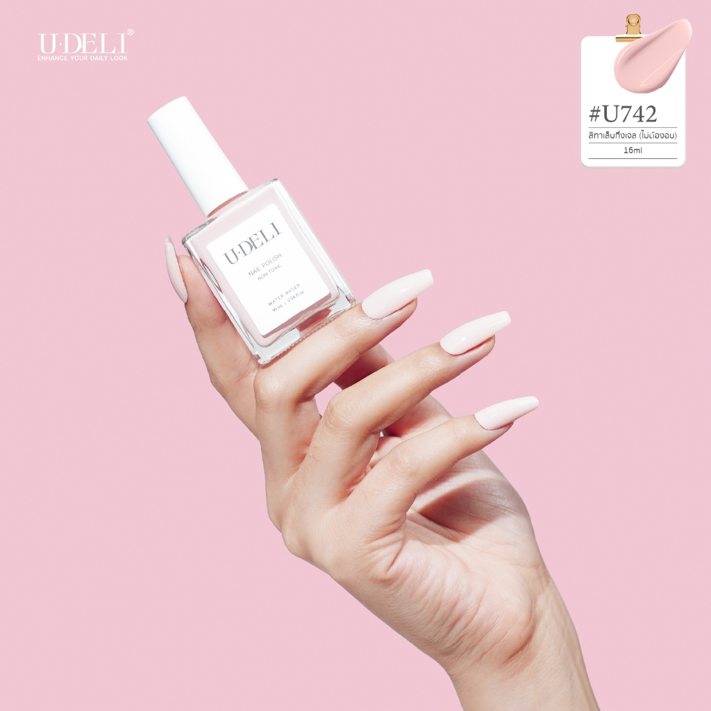 หยิบใส่ตะกร้าสีทาเล็บกึ่งเจล U-DELI (ไม่อบ) ชมพูอ่อน ที่ถูกต้องโทนอุ่น Vegan Nail-polish ไร้กลิ่นฉุน เรียบหรู U-742