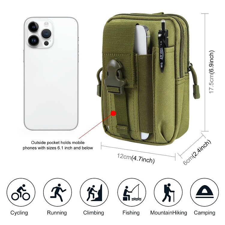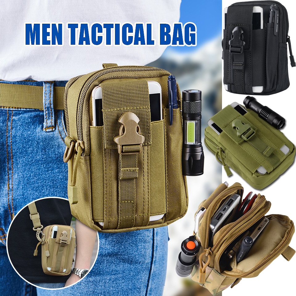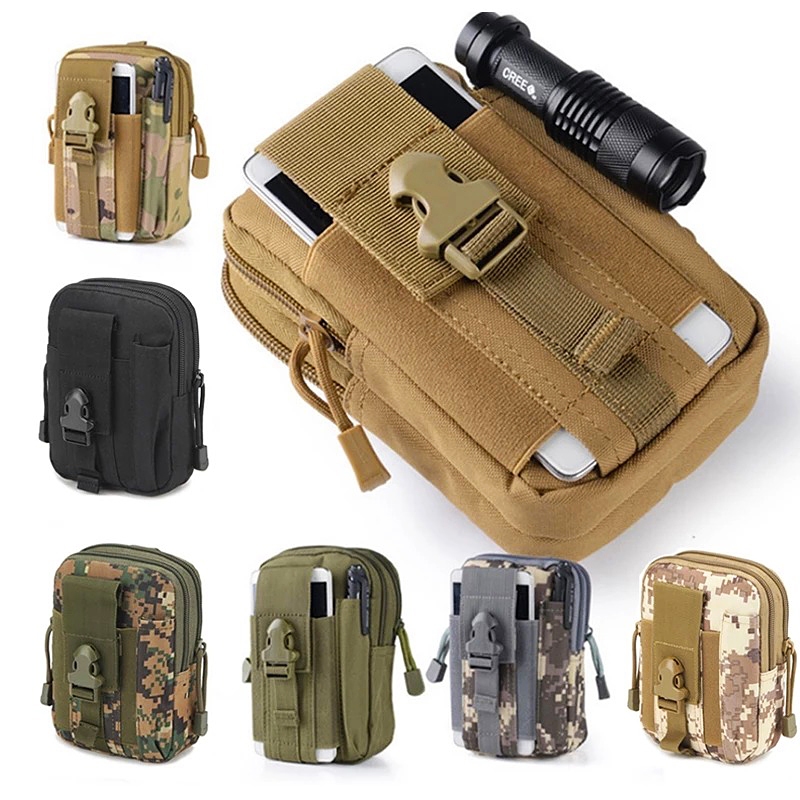 ทนต่อการสึกหรอไนลอนกันน้ําโทรศัพท์มือถือเอวกระเป๋าพร้อมเข็มขัดวิ่งแขวนกระเป๋าทหารพัดลมยุทธวิธีกีฬากลางแจ้งพรางเอวกระ Waist Bag