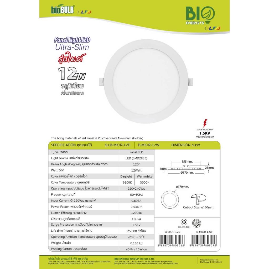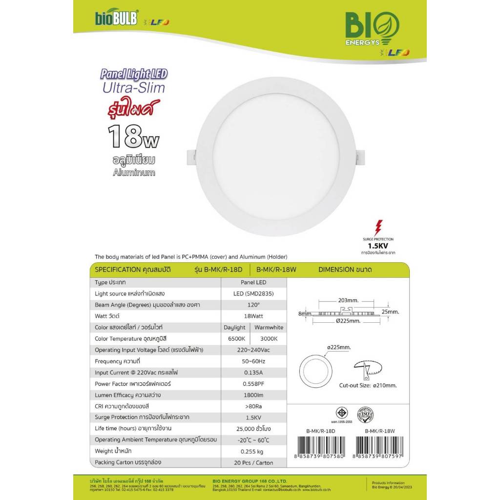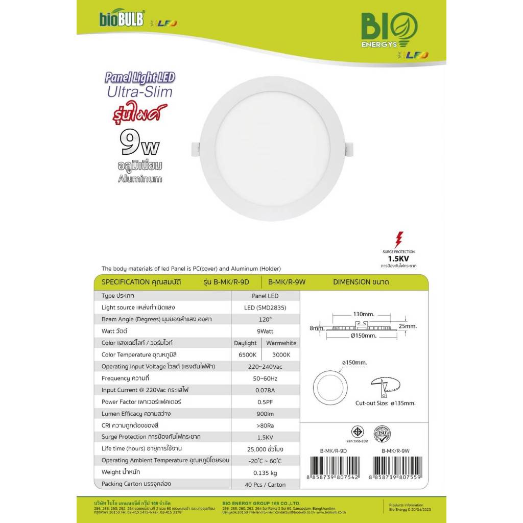 หยิบใส่ตะกร้าBio Energys โคมดาวน์ไลท์ฝังฝ้า รุ่นไมค์ แบบกลม-เหลี่ยม 9W 12W 18W Panel LED แสงDaylight