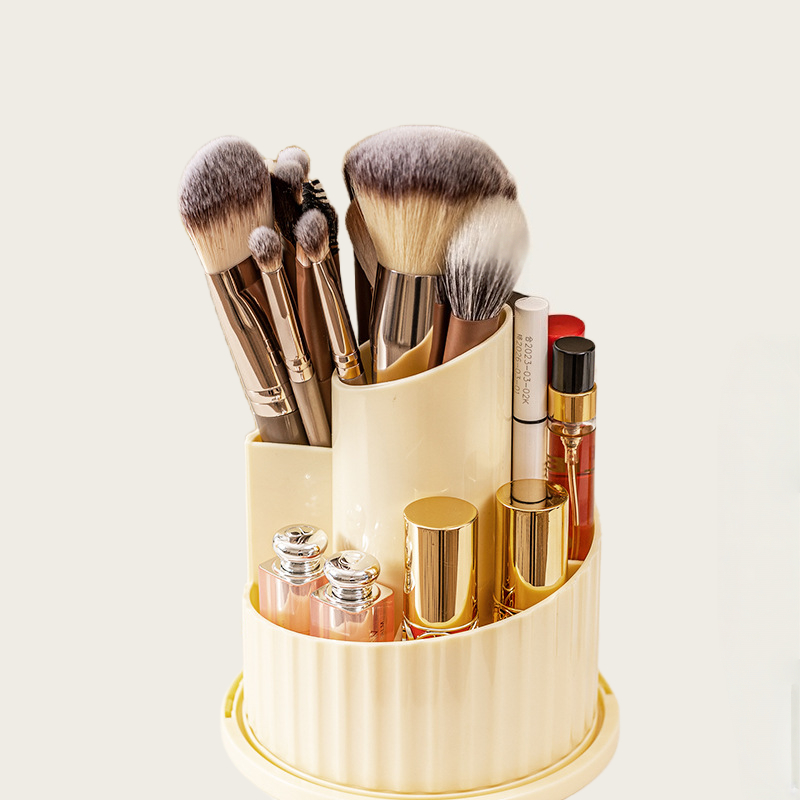 这款化妆品收纳盒可让您的梳妆台井然有序,时尚美观。它可360度旋转,方便您取用所需物品。