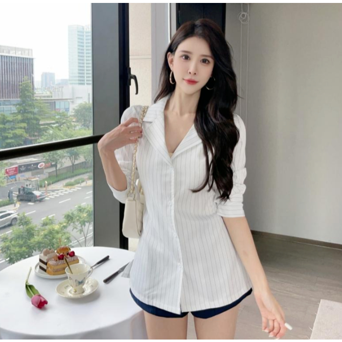 Dahong💖W653 เสื้อเชิ้ตแขนยาวผู้หญิงเกาหลี คอวี ทรงเข้ารูป คอวีเซ็กซี่สำหรับผู้หญิง ทรงสลิมฟิต