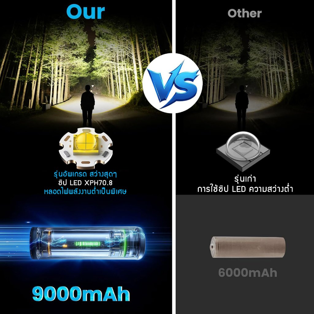 ใช้แบตลิเธียมอย่างดี 4 ก้อน ให้ใช้กันยาวๆเปิดสุดแบบต่อเนื่องนาน 8-10 ชั่วโมง ใช้แบบปกติปิดบ้างเปิดบ้าง 12 ชั่วโมงกว่า