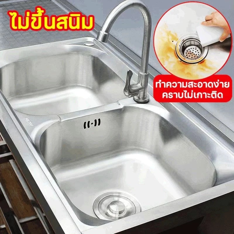 🔥ใช้ดีสุดคุ้ม🔥ซิ้งค์ล้างจาน อ่างล้างจาน ซิ้งล้างจาน 2หลุม 3ชั้น 120*50*80 แถมก๊อกน้ำฟรี ไม่เป็นสนิม อ่างล้างจานล้างผัก