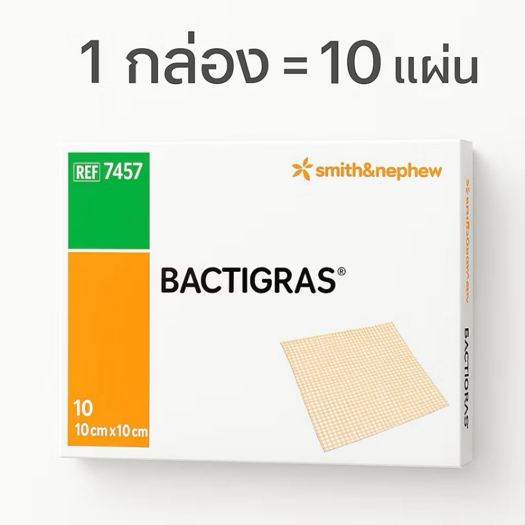 BACTIGRAS แผ่นตาข่ายปิดแผล กันแผลติดผ้าก๊อซ ขนาด 10×10ซม. ( 1 กล่อง 10 แผ่น )