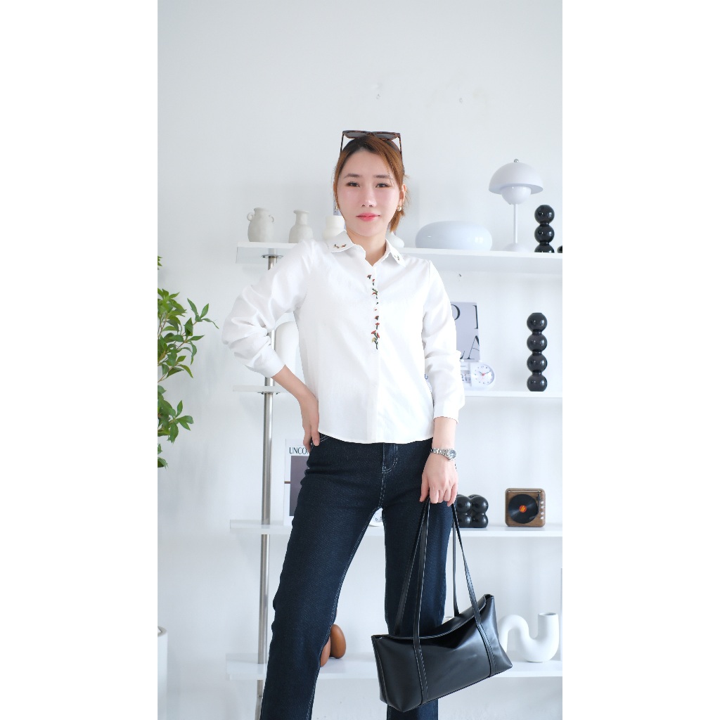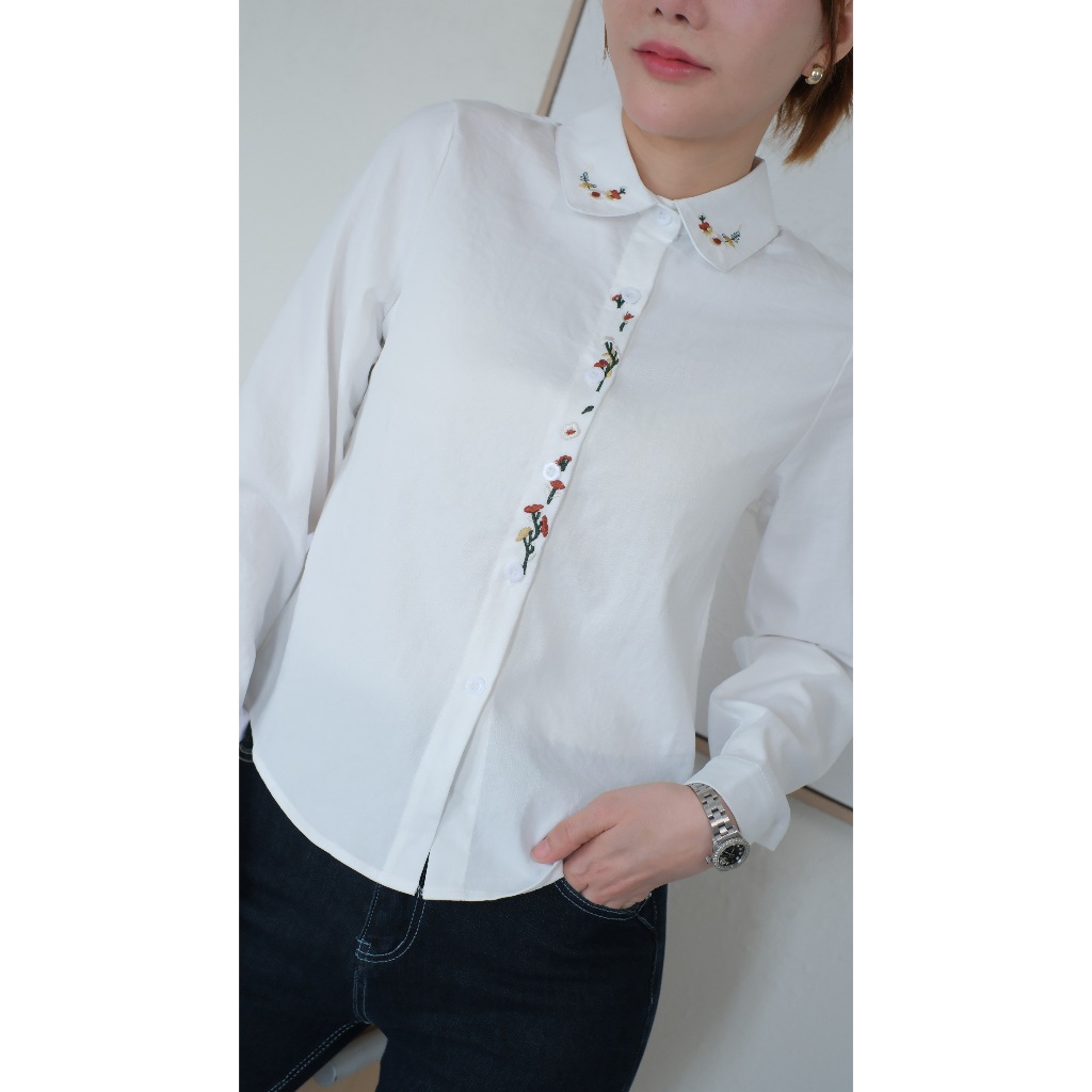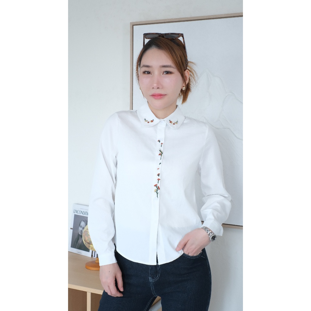 -Lawyer Store | [922827] เสื้อคอปกแขนยาว ปักแถบดอก เสื้อคอปก แขนยาว กระดุมใช้งานได้จริง เสื้อเชิ๊ตแขนยาว เสื้อเชิ๊ต ดูมีสไตล์ ที่ไม่ซ้ำใคร เสื้อทำงาน เสื้อใส่เที่ยว ใส่สบายทุกวัน สำหรับสาวออฟฟิศ จาก Lawyer Store สำหรับคุณผู้หญิง ที่รักการแต่งตัว ดูมีสไตล์