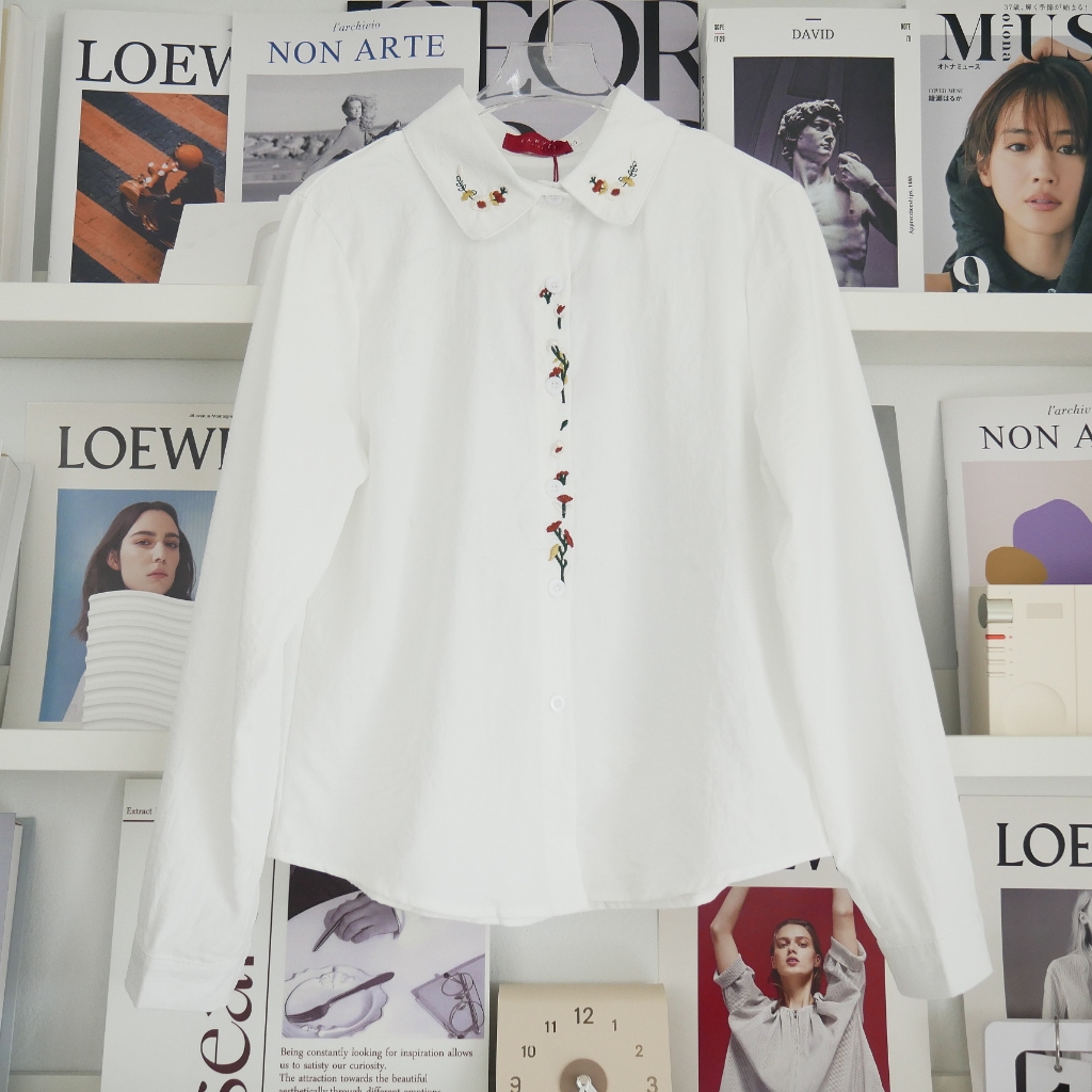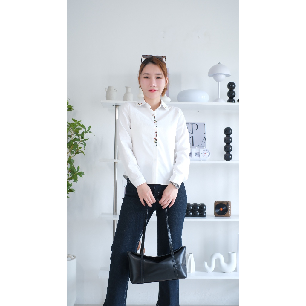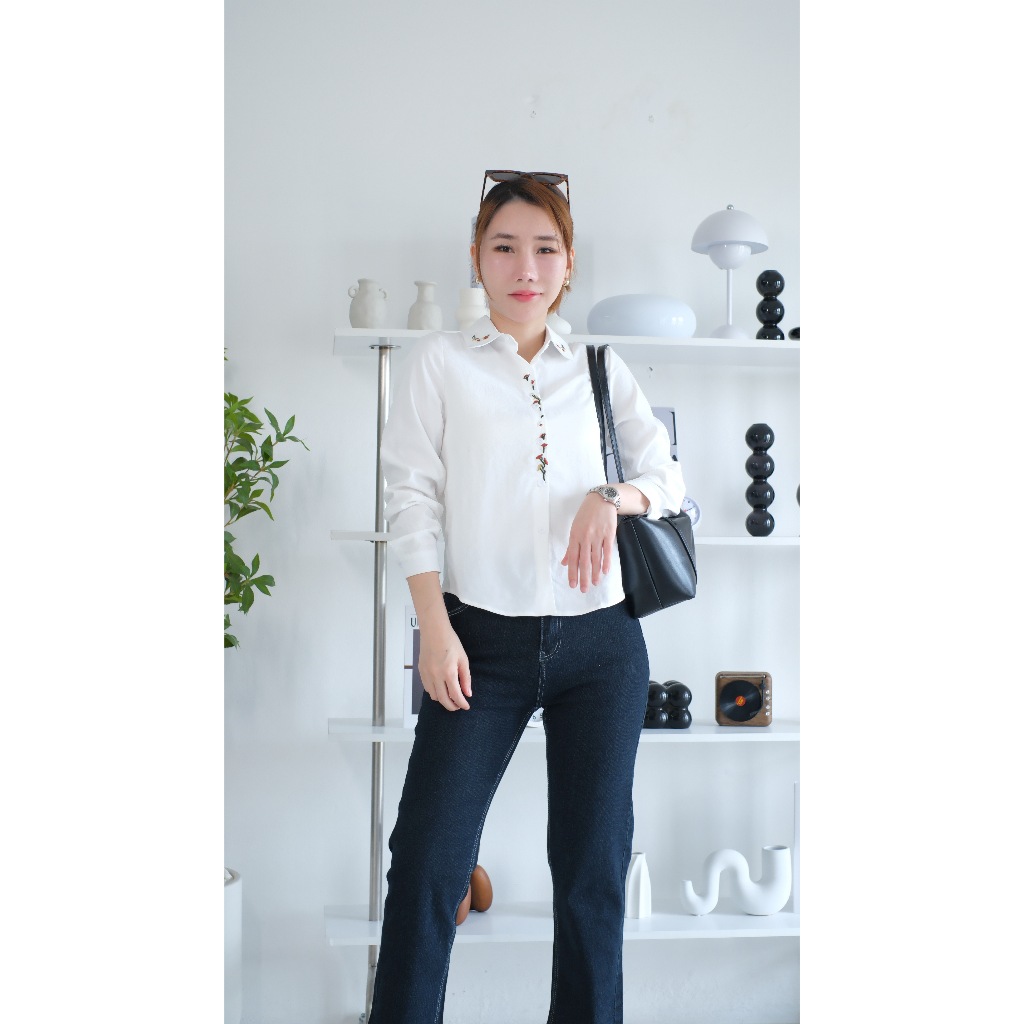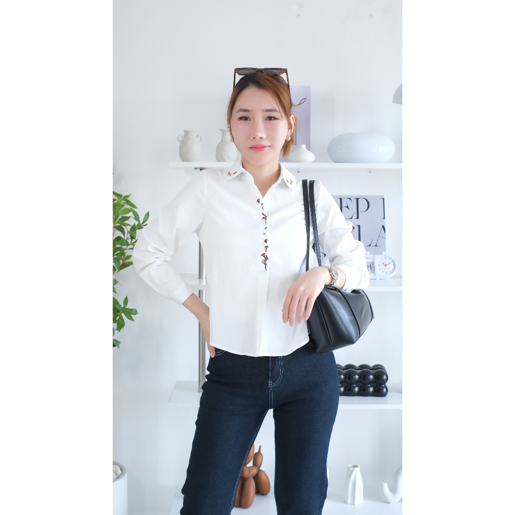 -Lawyer Store | [922827] เสื้อคอปกแขนยาว ปักแถบดอก เสื้อคอปก แขนยาว กระดุมใช้งานได้จริง เสื้อเชิ๊ตแขนยาว เสื้อเชิ๊ต ดูมีสไตล์ ที่ไม่ซ้ำใคร เสื้อทำงาน เสื้อใส่เที่ยว ใส่สบายทุกวัน สำหรับสาวออฟฟิศ จาก Lawyer Store สำหรับคุณผู้หญิง ที่รักการแต่งตัว ดูมีสไตล์