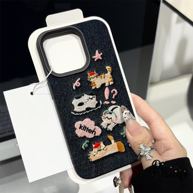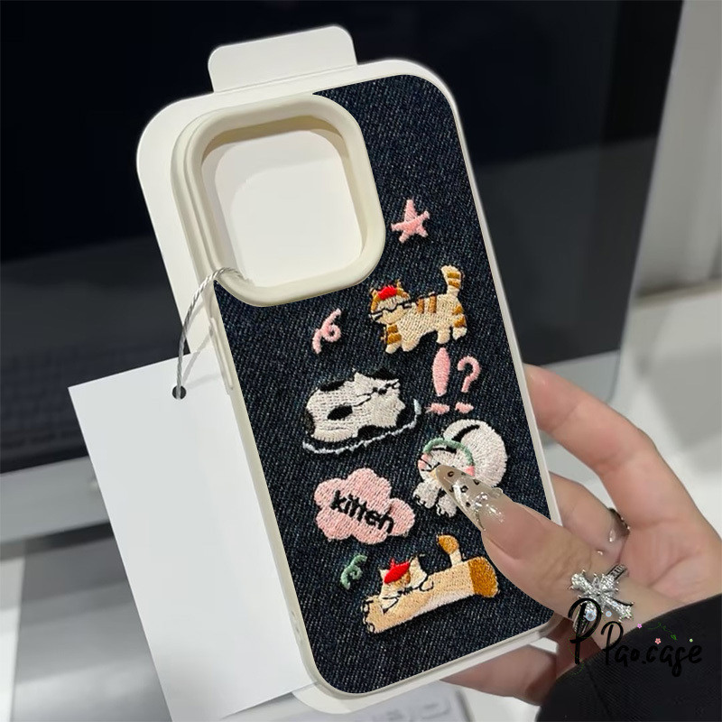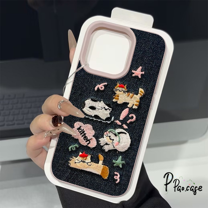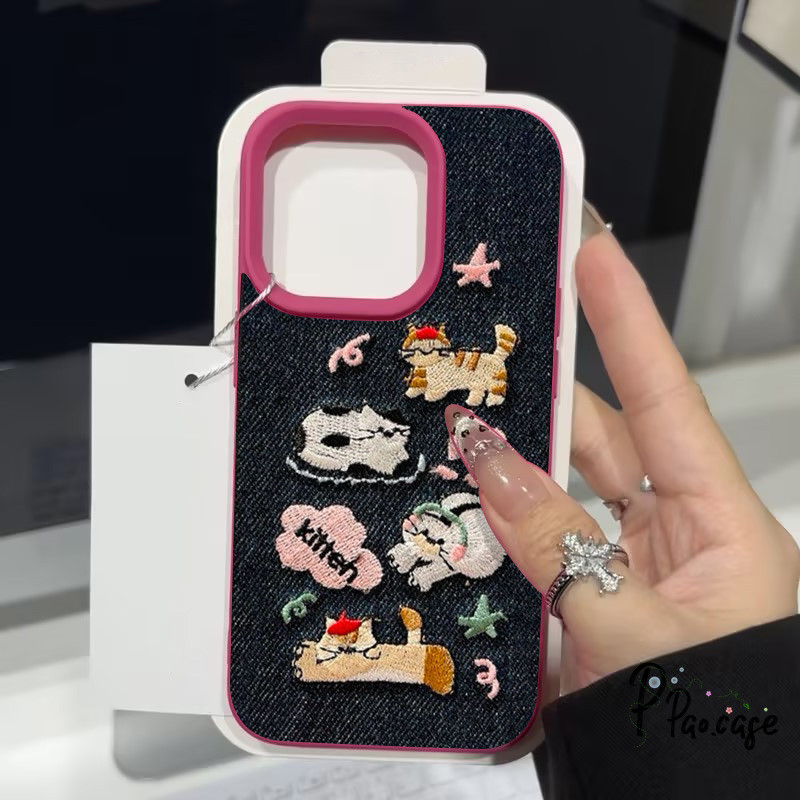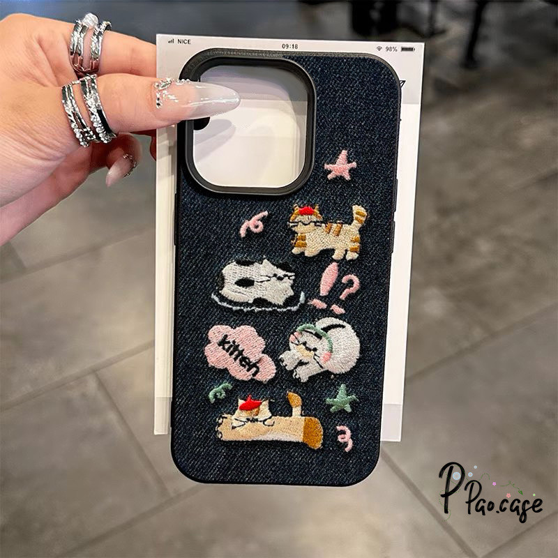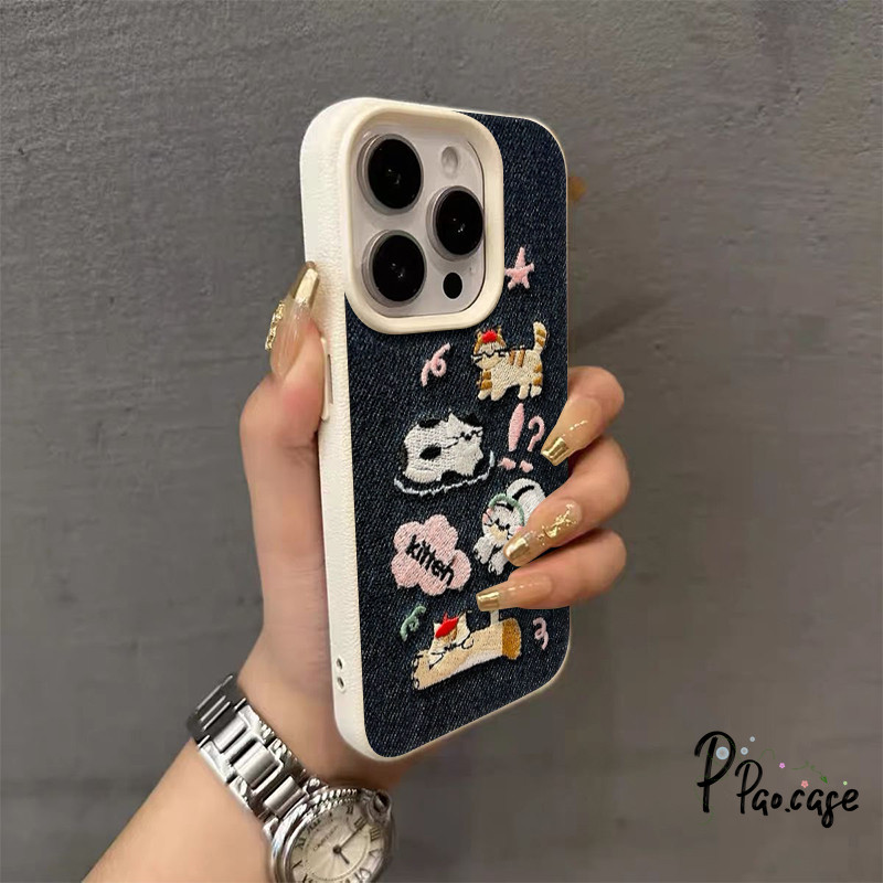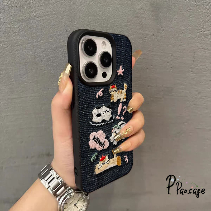 กรณี สำหรับ IPhone 7Plus XR 16 11 13 15 12 14 Pro Max X XS Max 16 15 7 8 Plus เคสคาวบอยปักลายสุนัขแมวน่ารักตลกๆ