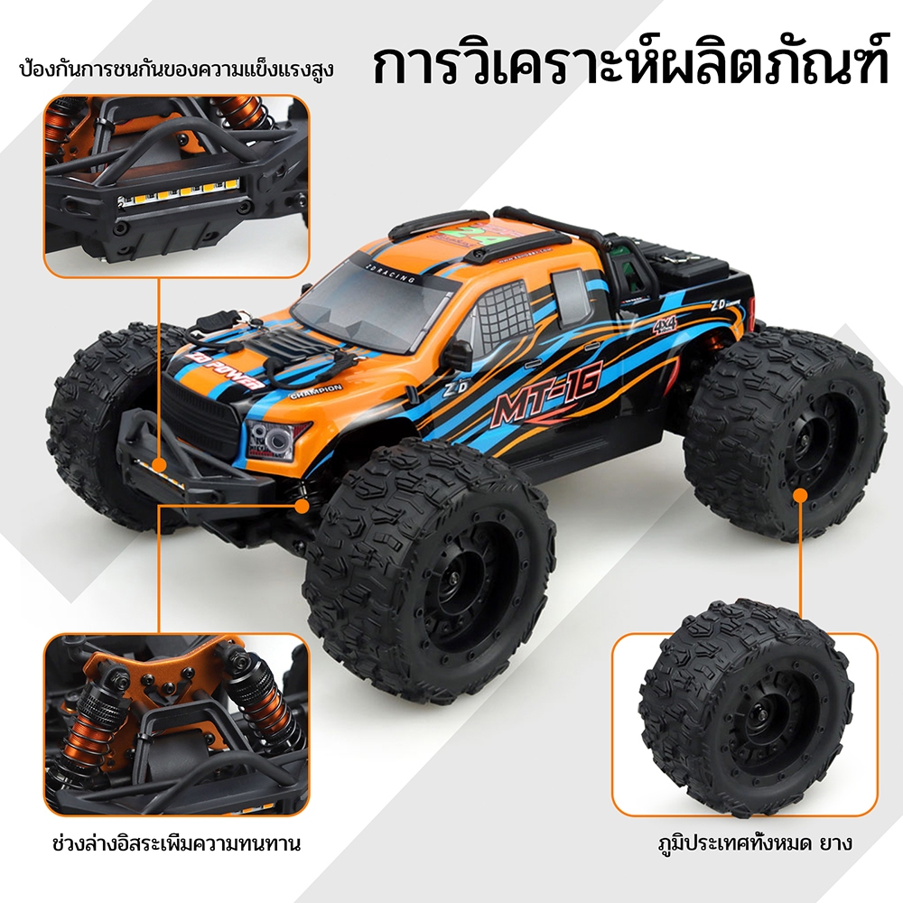 ZD Racing MT-16 RC รถ 1:16 4WD 2.4GHZ 4CH รีโมทคอนโทรล Off-Road รถ 2845 Brushless 3600KV มอเตอร์ 80 กม./ชม. สําหรับเด็กผู้ใหญ่