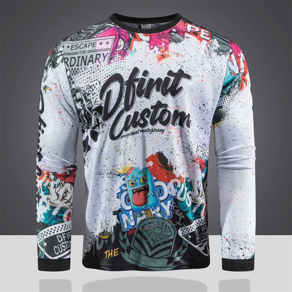 เสื้อกีฬาแขนยาว พิมพ์ลายเสื้อกีฬา เนื้อผ้าดี ระบายอากาศเบา สบาย เหมาะกับการขี่รถมอเตอร์ไซค์